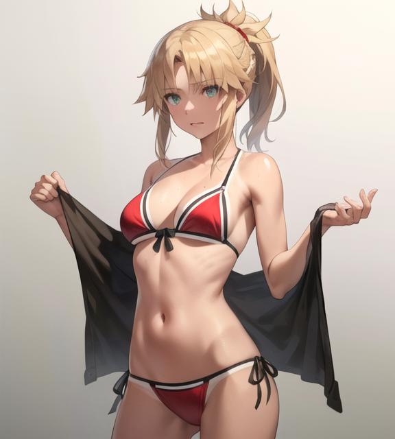 => Her first rider form: MordredRiderAscension1,red bikini,bikini,tan