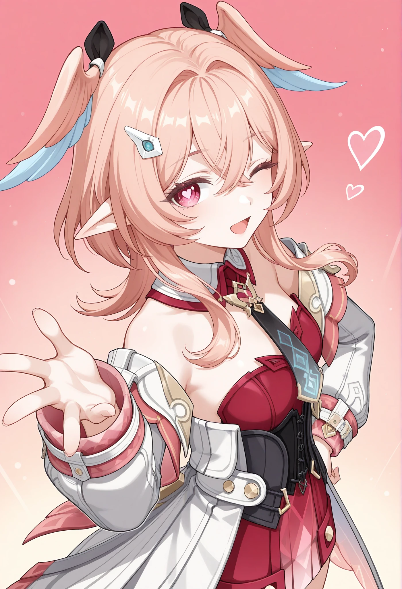linnea \(genshin impact\),white pupils,heart-shaped pupils,hairclip,head wings,服装 (outfit)