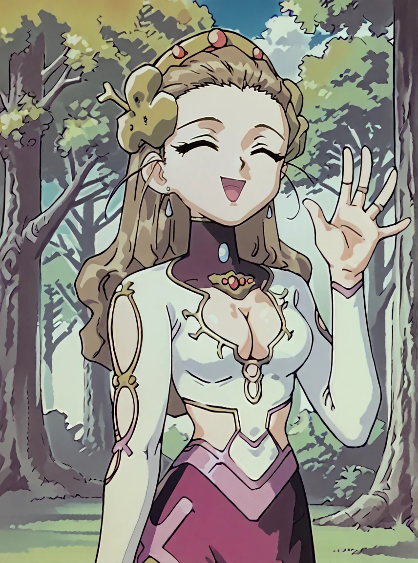 RuneVenTv, 1girl, green eyes, long light brown hair, V3nTv tiara, breasts, R8n3Tv outfit,