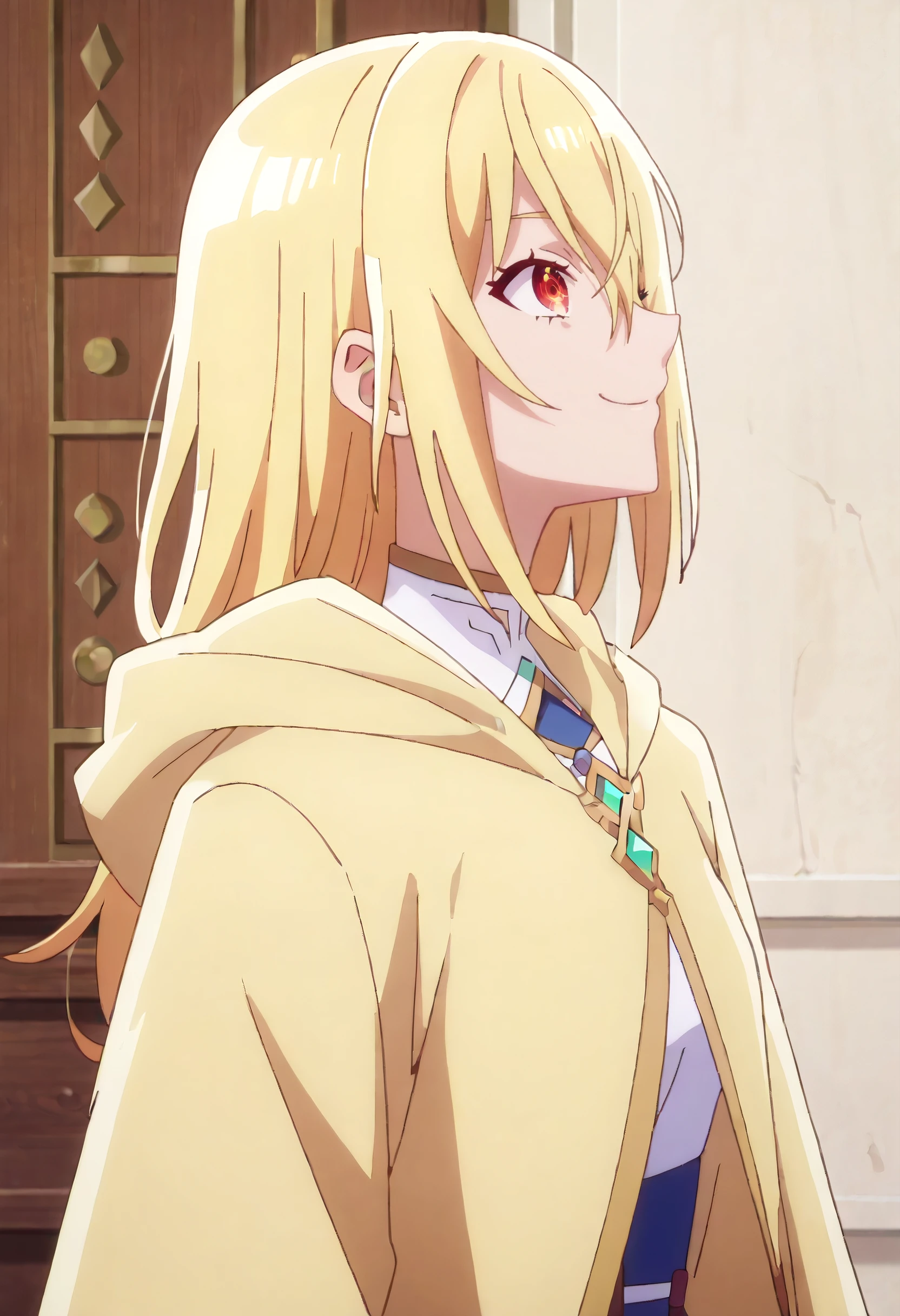 KMaLena, blonde hair, long hair, hair between eyes, red eyes,