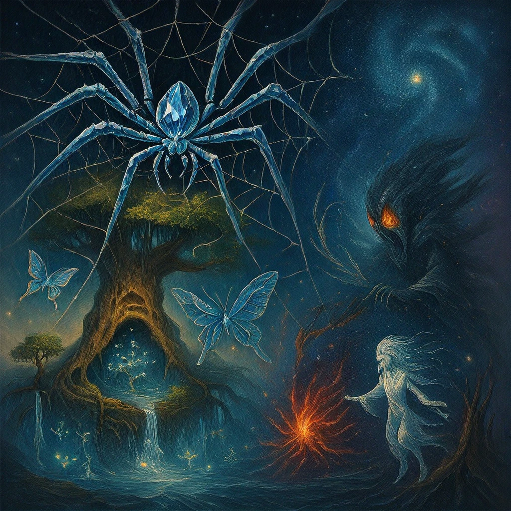 Color and Light: Emphasize ethereal, cosmic lighting conditions. Terms like "bioluminescent," "crystalline," "shimmering," and "spectral" enhance the otherworldly atmosphere.