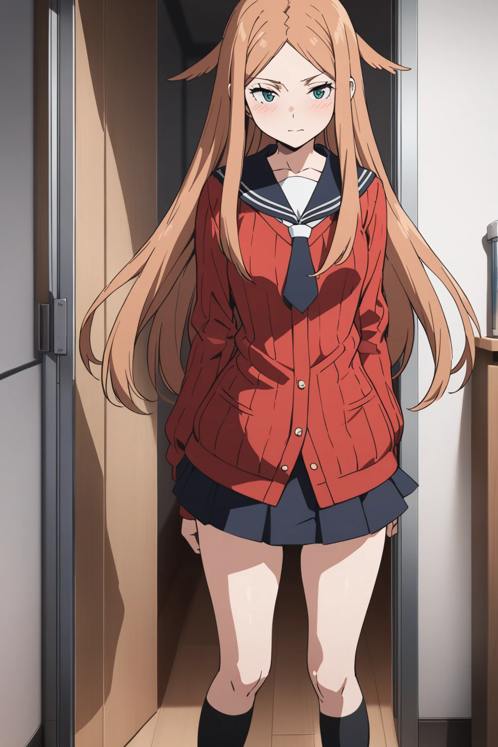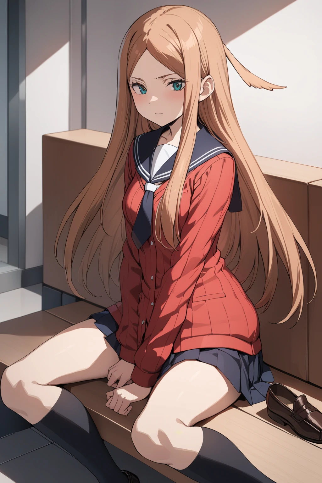 Base Outfit: sailor collar, school uniform, red cardigan, pleated skirt, black socks, loafers