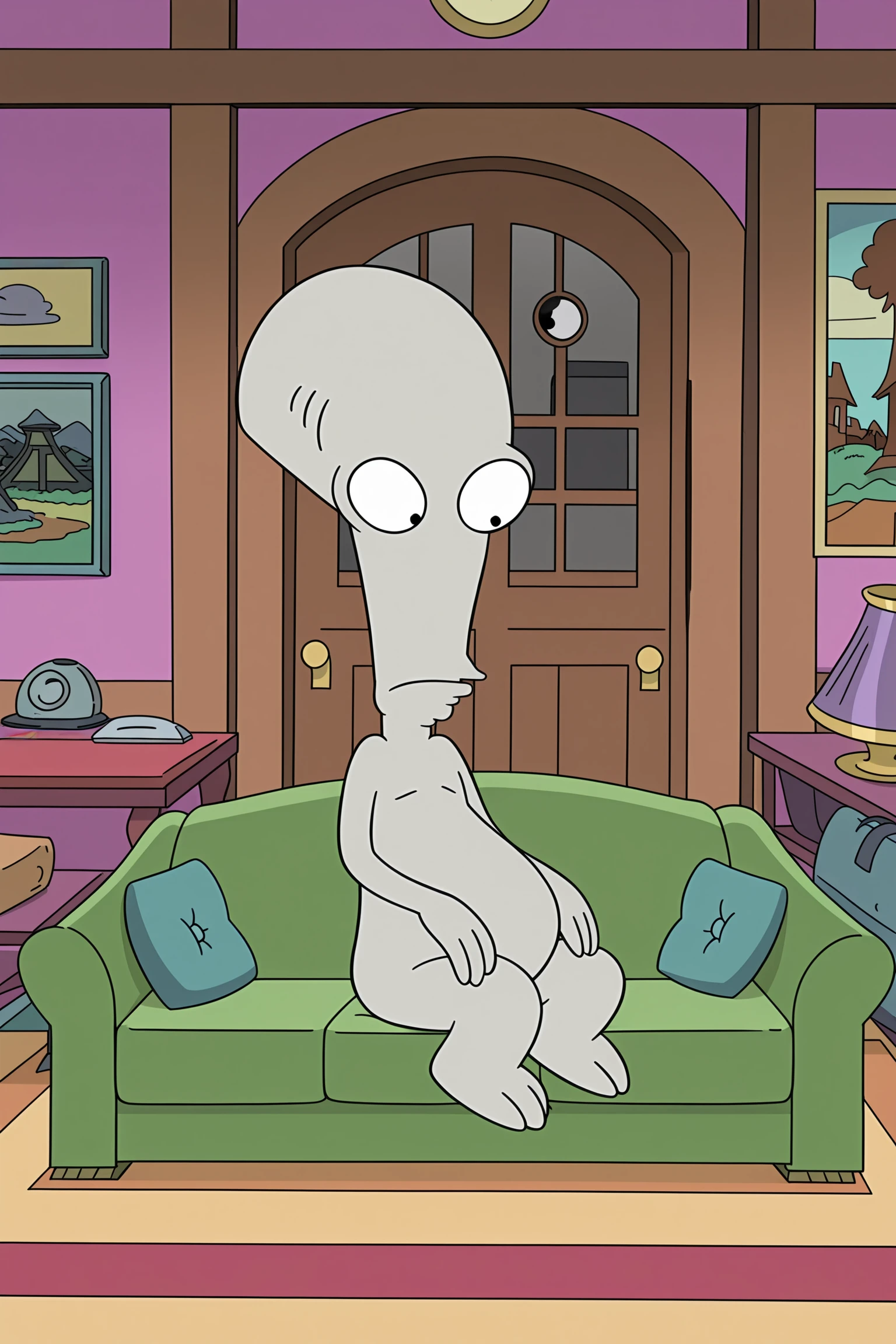 Roger Smith (character), 1boy, solo, bald, black eyes, wide-eyed