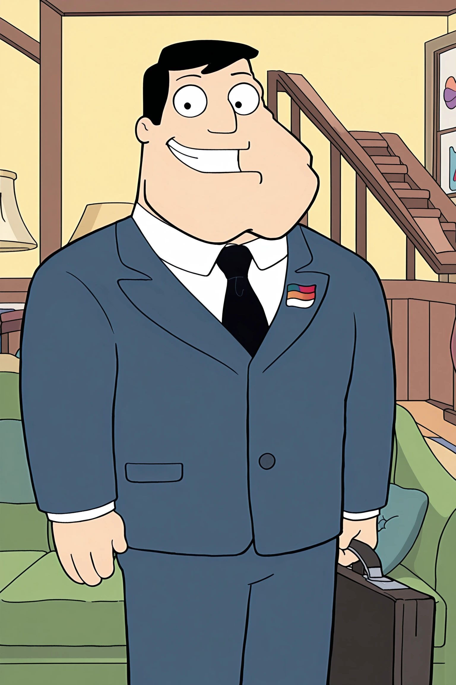 Stan Smith (character), 1boy, solo, black hair, black eyes | Stan main outfit, formal, suit, black necktie, white shirt, collared shirt blue suit