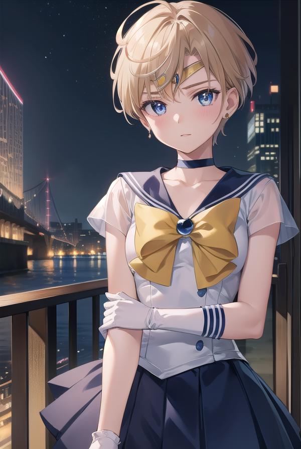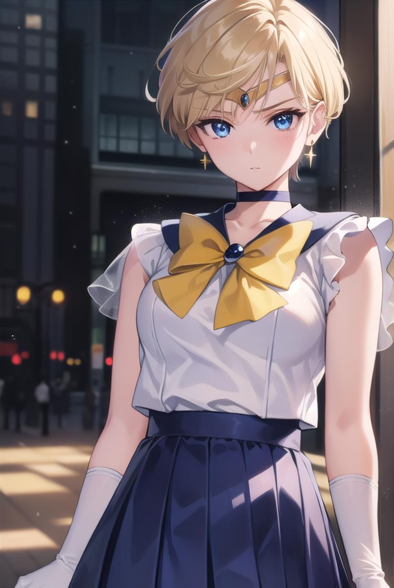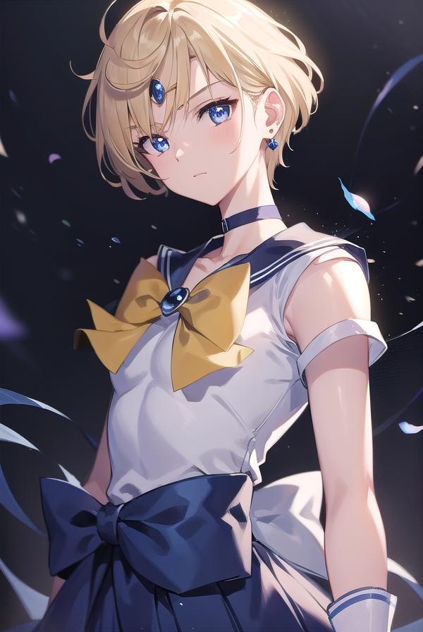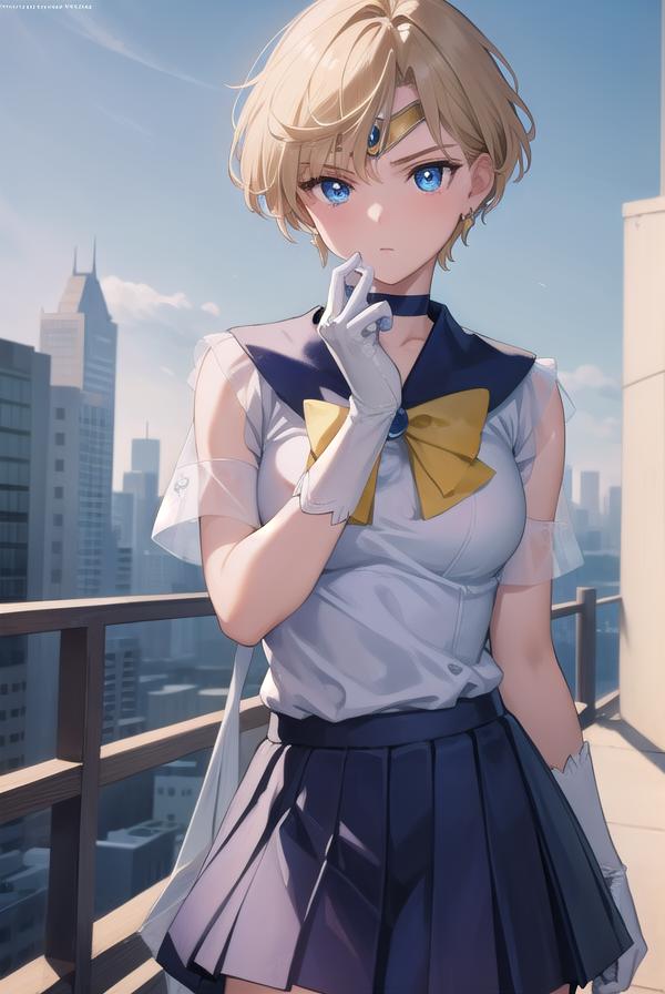 sailor uranus, blonde hair, blue eyes, (parted bangs:1.5), short hair, very short hair,