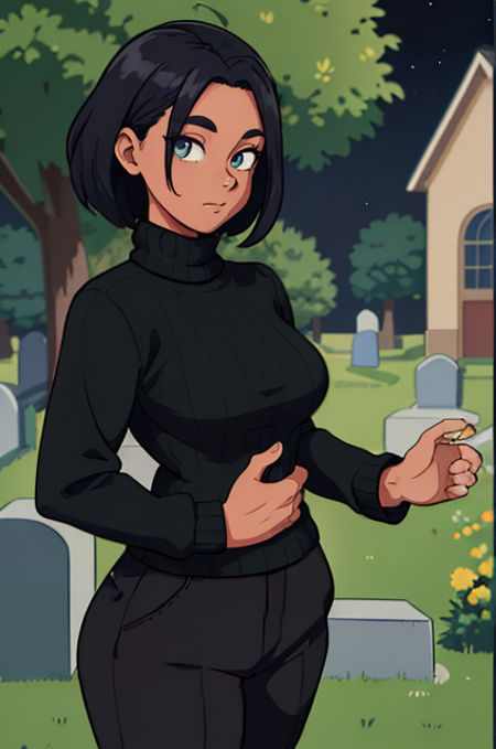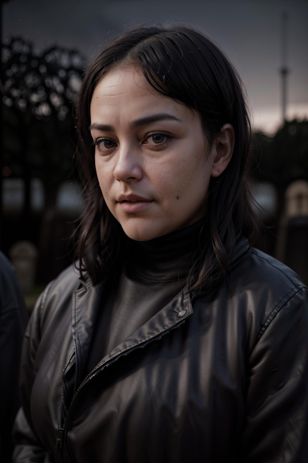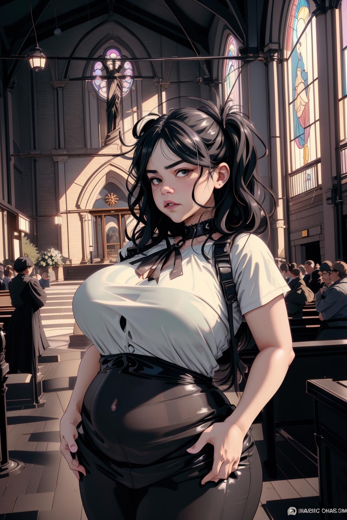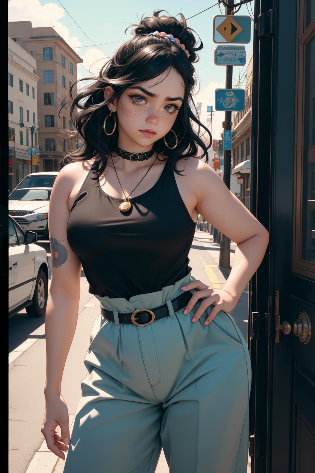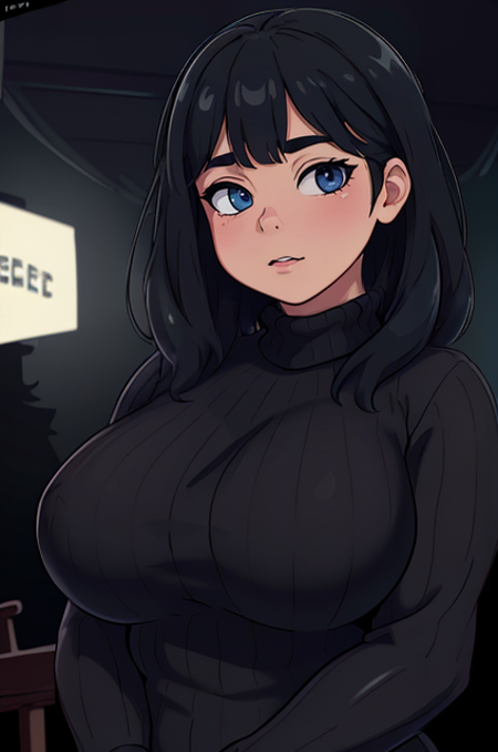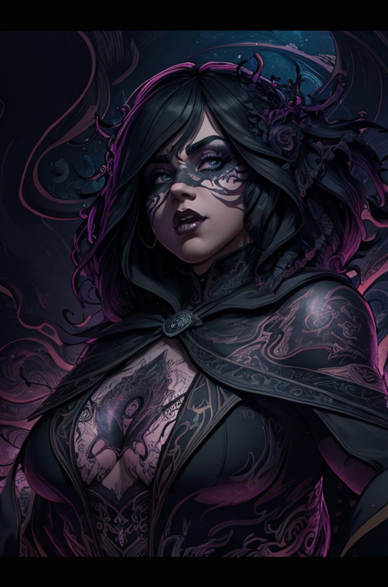 Eleanor and Astoria were born of being asked to make a couple of goth nobodies. I did two classic goth looks. This is the larger one. The training didn't leave her with much of her make-up, but she responds well to gothic make-up prompts. I lost some of the weight in the training, but "fat" works really well.