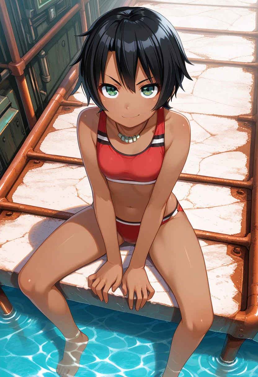 maytasng, green eyes, dark-skinned female, short hair, black hair,