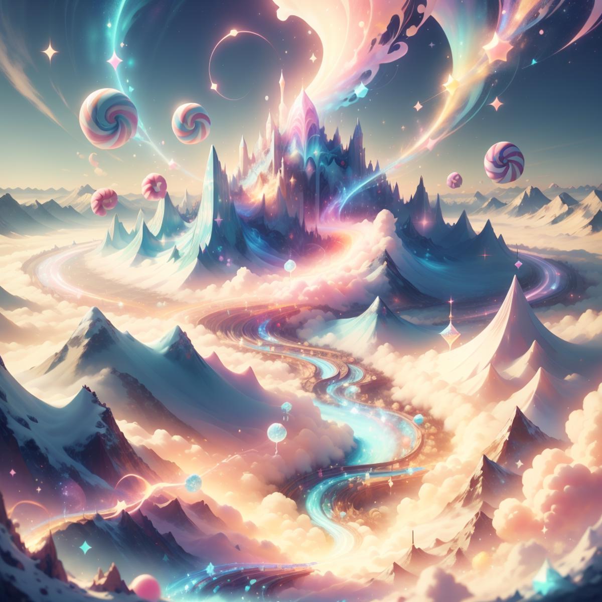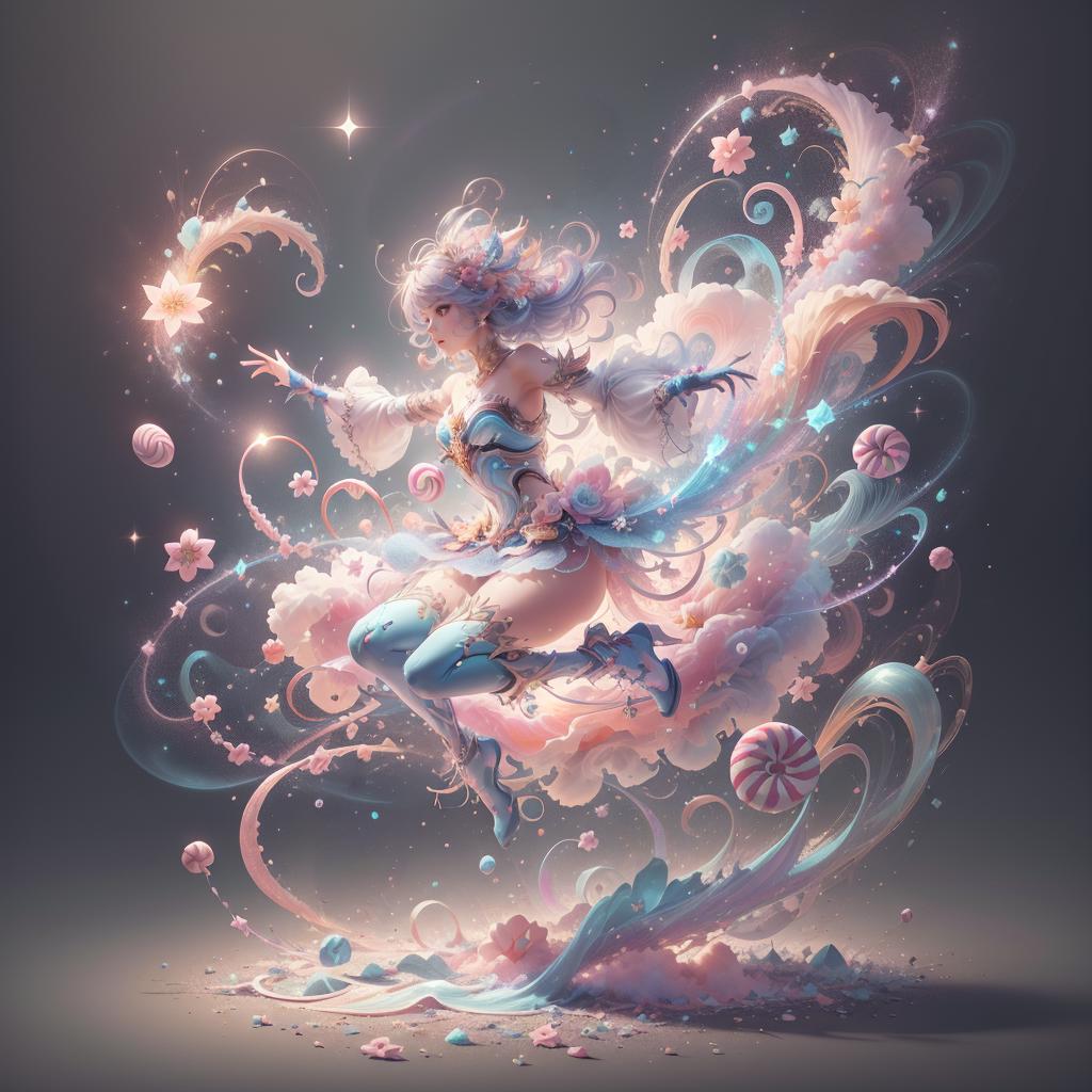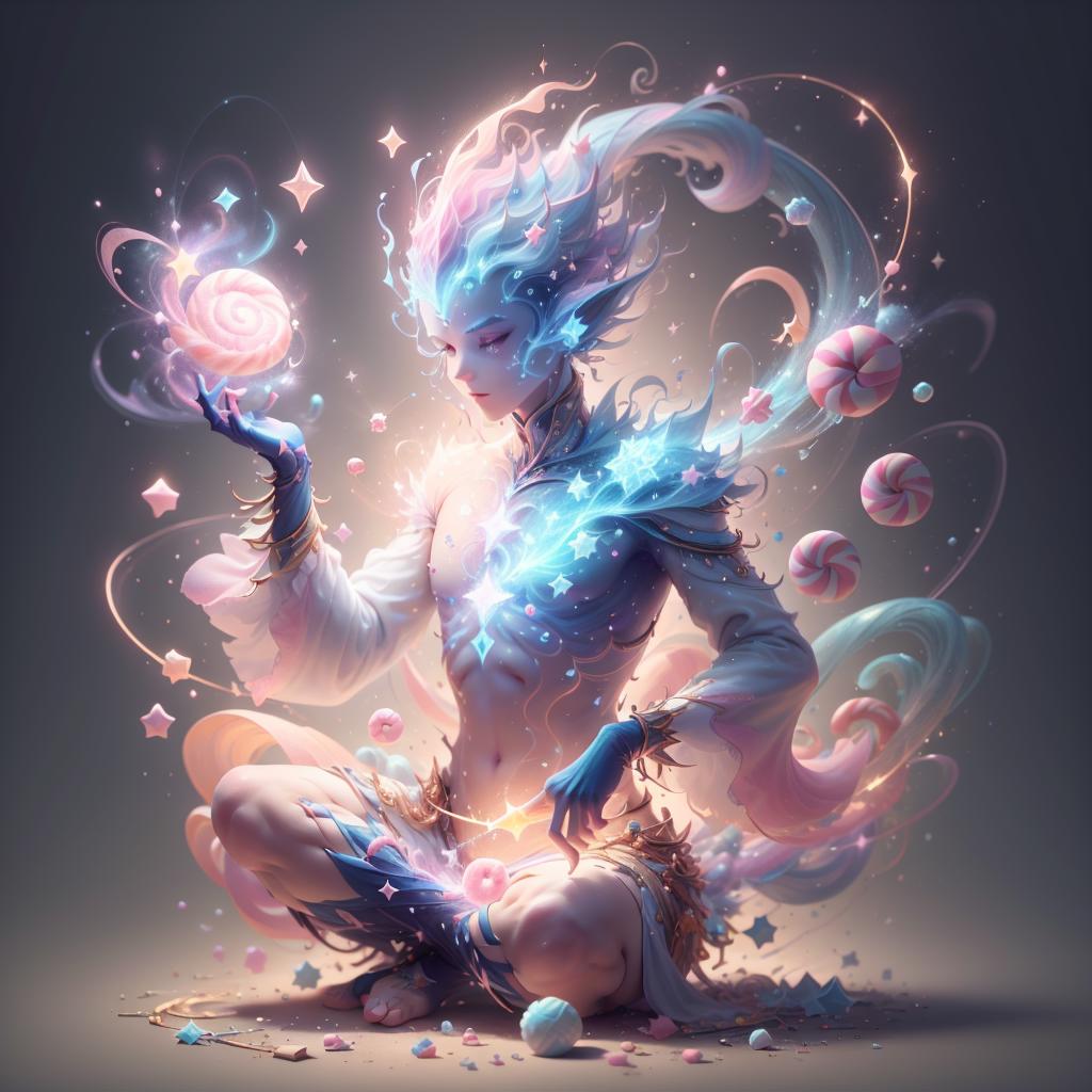 sugary aura,note that you can also add types of sweets or candy (like ice cream or jelly beans) to the prompt and they'll mostly resonate with the LoRA