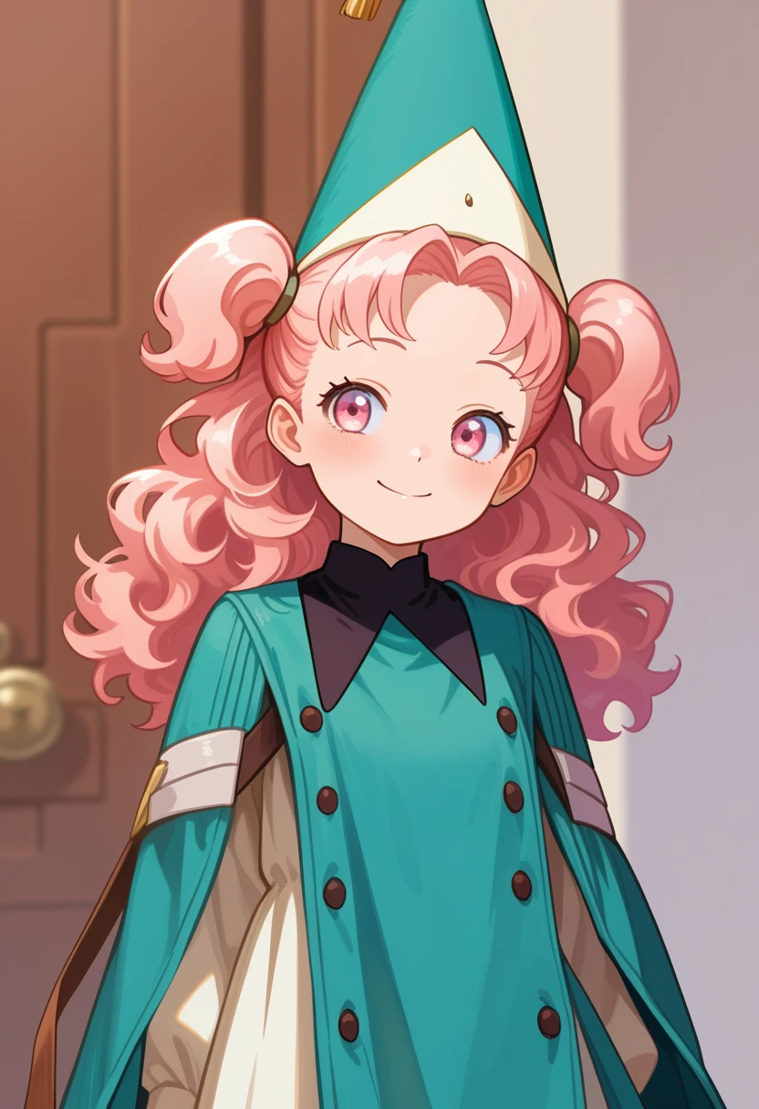 テティア 特堤安: 1girl, tetia, pink hair, pink eyes, long hair, curly hair, two side up