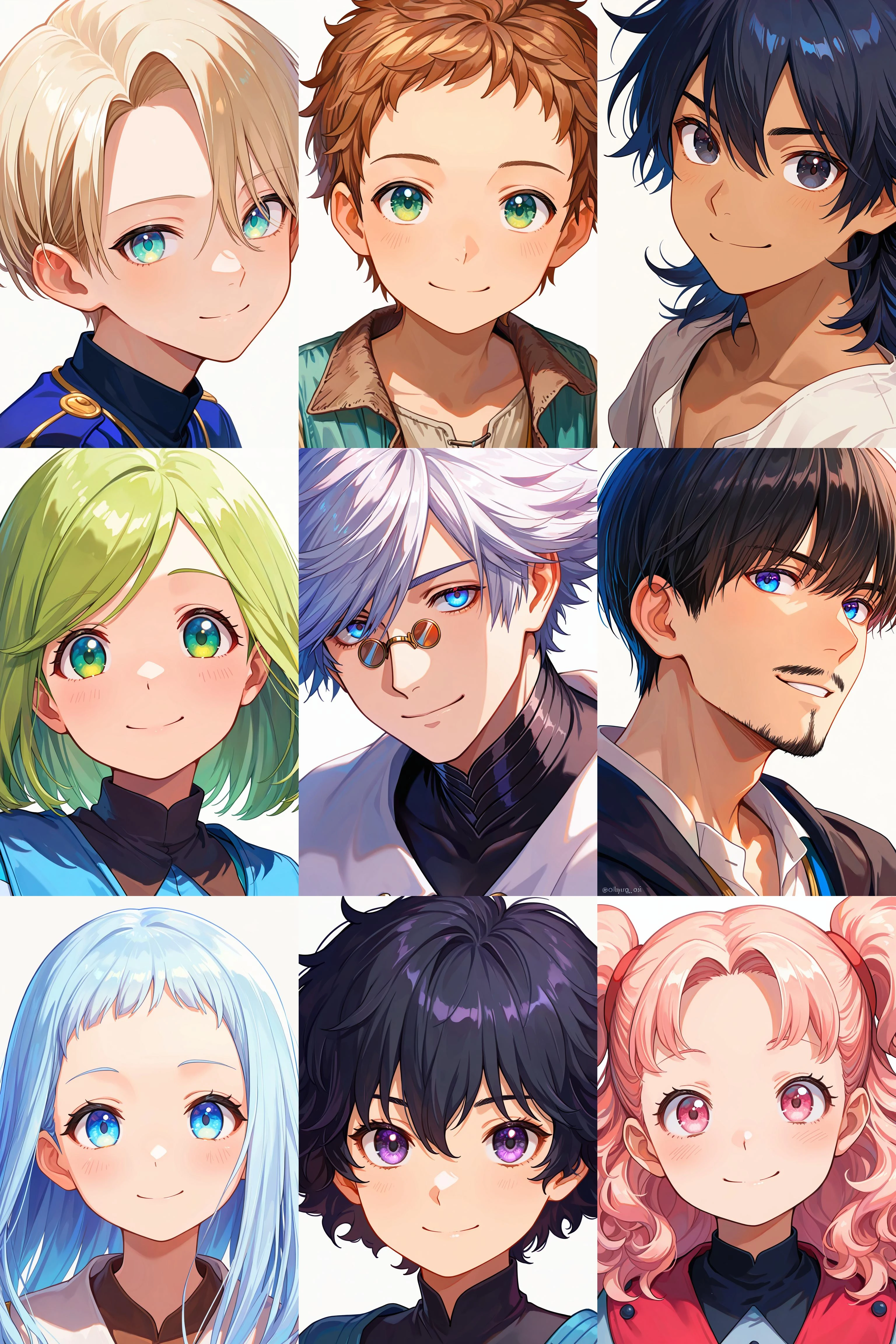 Note: The following are example usages. You can add commas, change the word order or modify hair styles if needed.