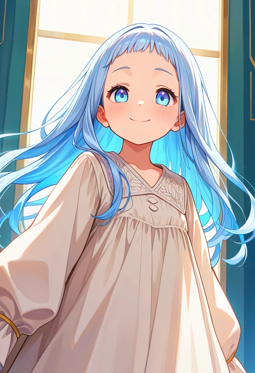 リチェ 利切: 1girl, richeh, light blue hair, short bangs, light blue eyes
