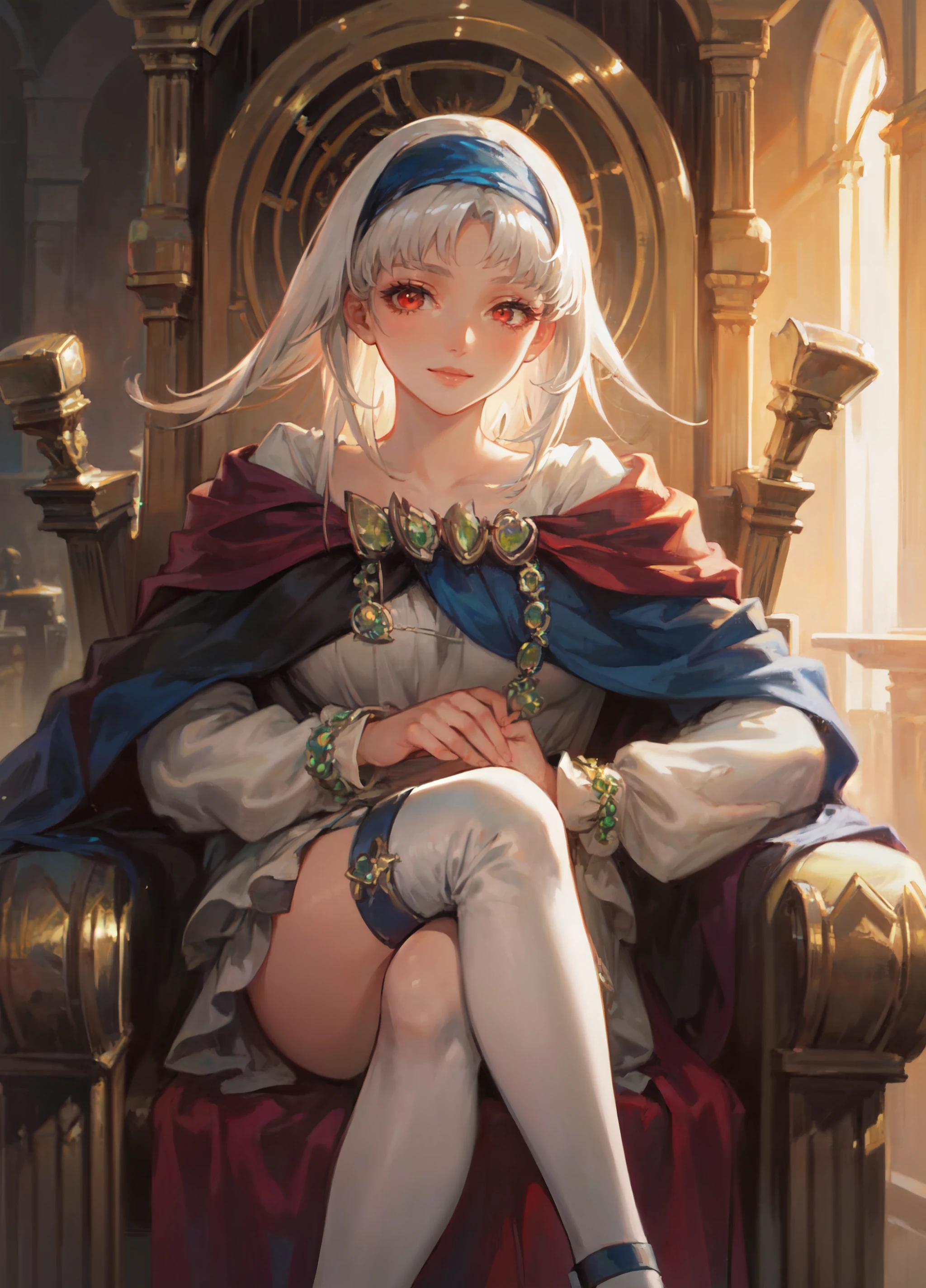 Default Outfit: SierraMikain, pale skin, bangs, hairband, cape, dress, shoes, jewelry, bracelet