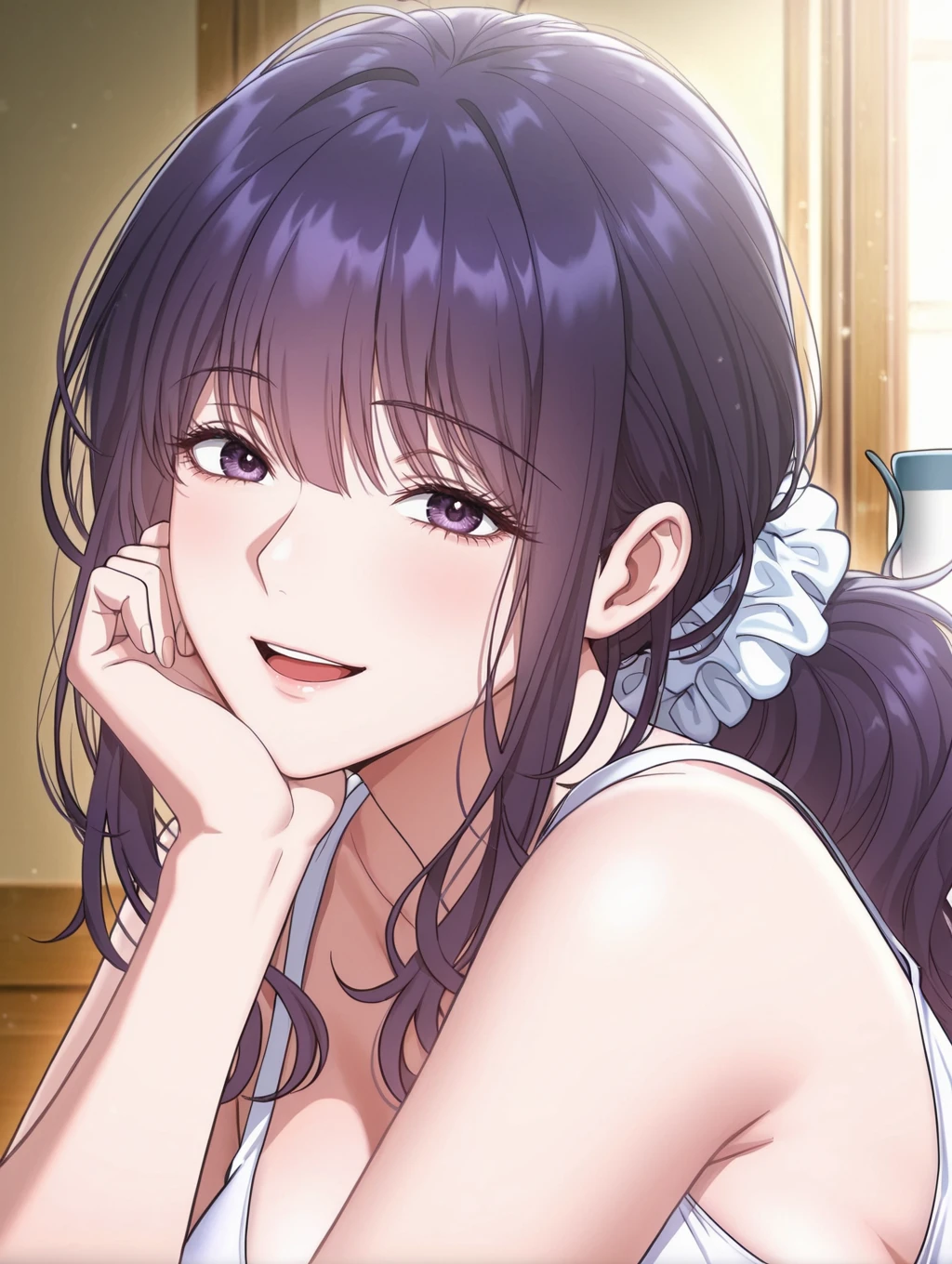 scrunchie, sidelocks, sideponytail, low ponytail