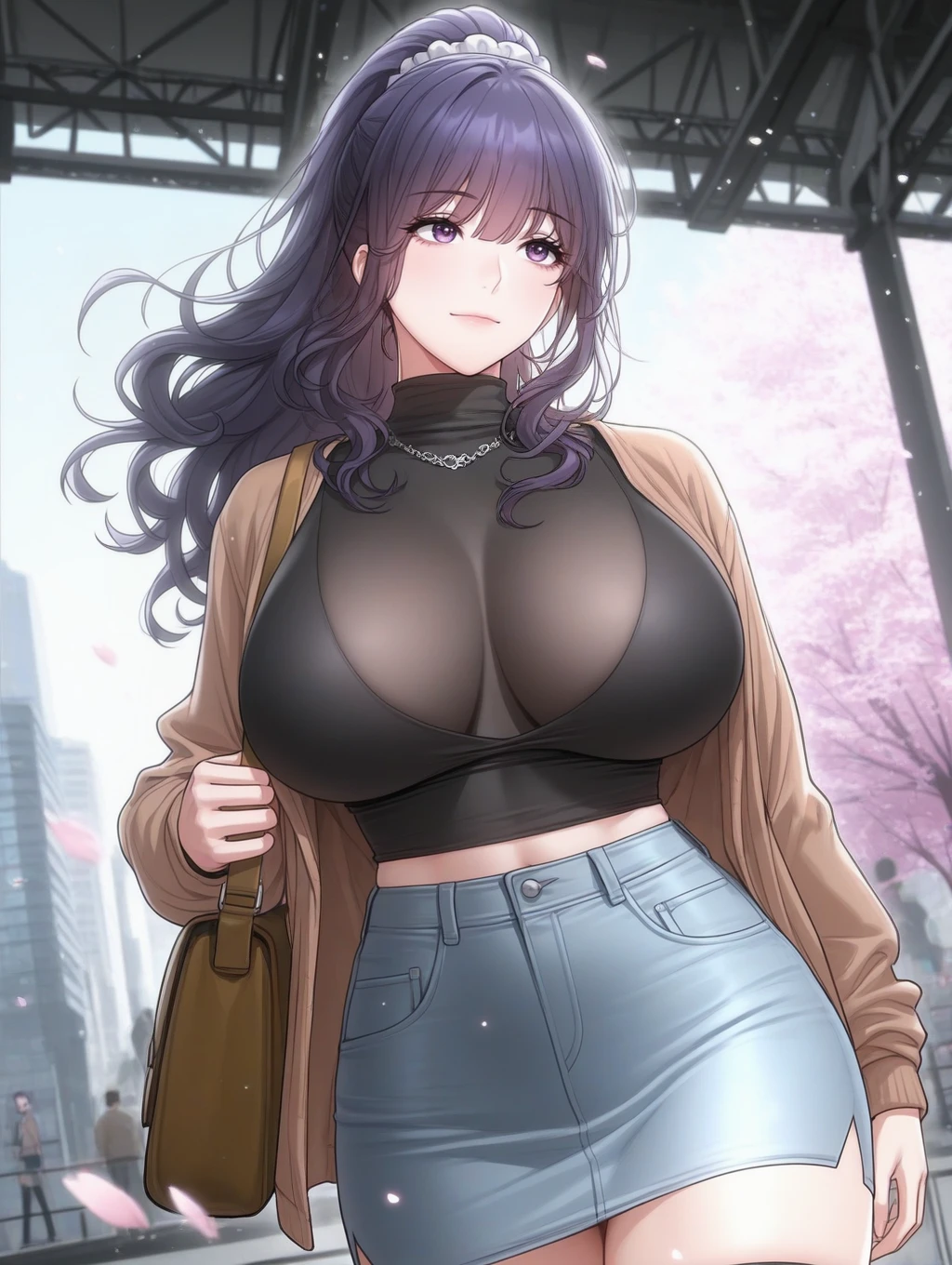 leedami_il,mature female,purple eyes,huge breasts,long hair,purple hair,bangs, eyebrows visible through hair