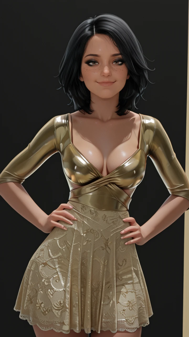 kira_mb_def, black hair, hazel eyes, short hair, lips, freckles, ??????????????, black eyeshadow