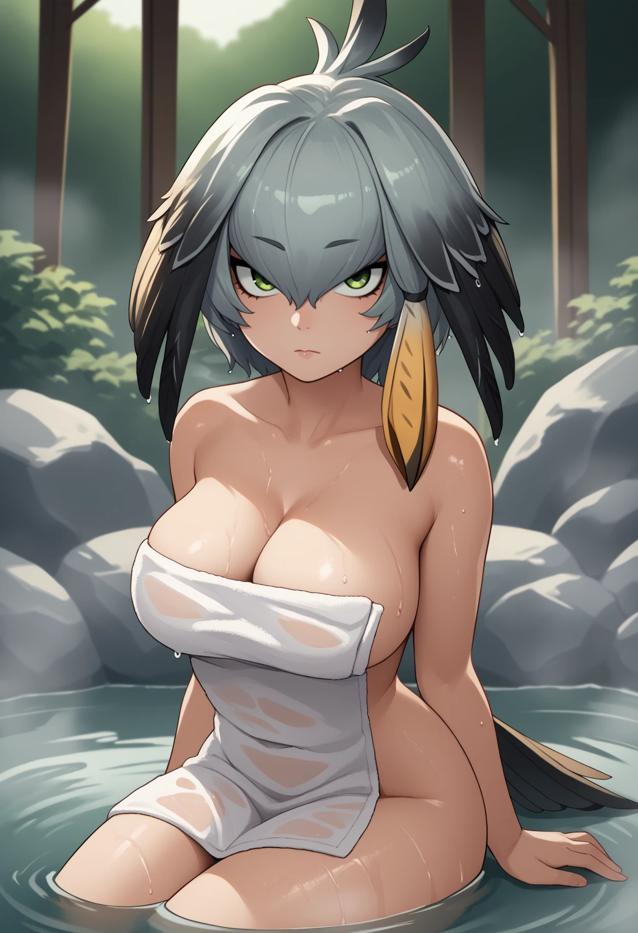 sh0ebill, bird wings, bird tail, head wings, green eyes