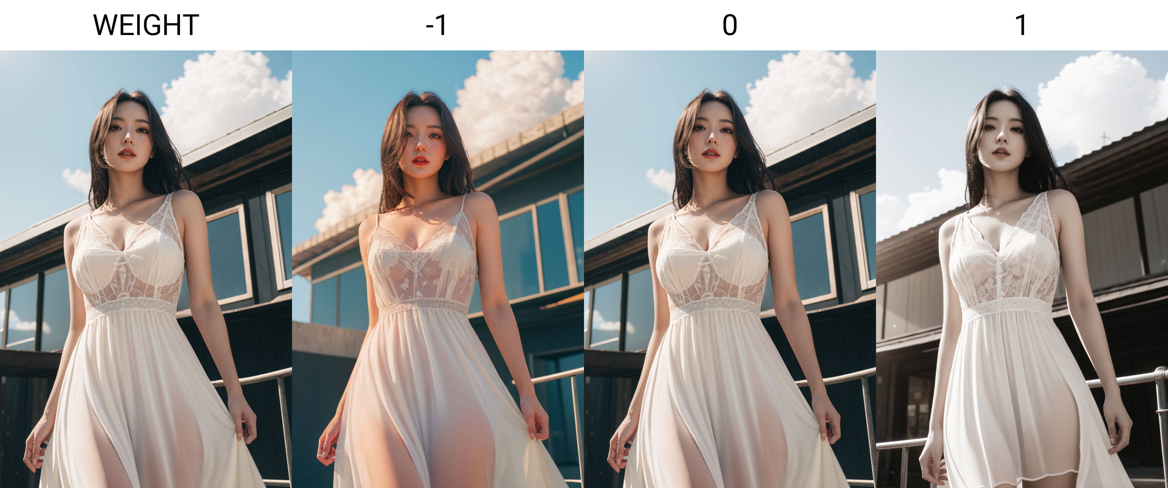The saturation of the image is adjusted by the weights, the higher the weight, the lower the saturation, the closer to black and white. On the contrary, the lower the weight, the higher the saturation, the more vivid the colors.