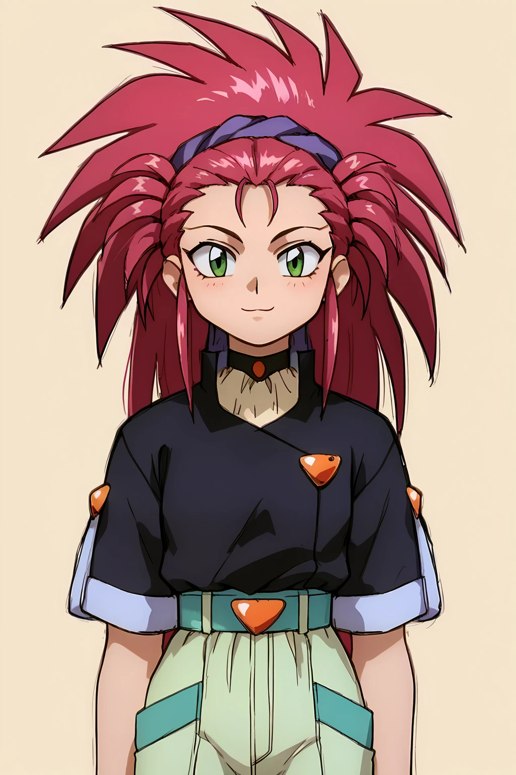 spiked hair, red hair, very long hair