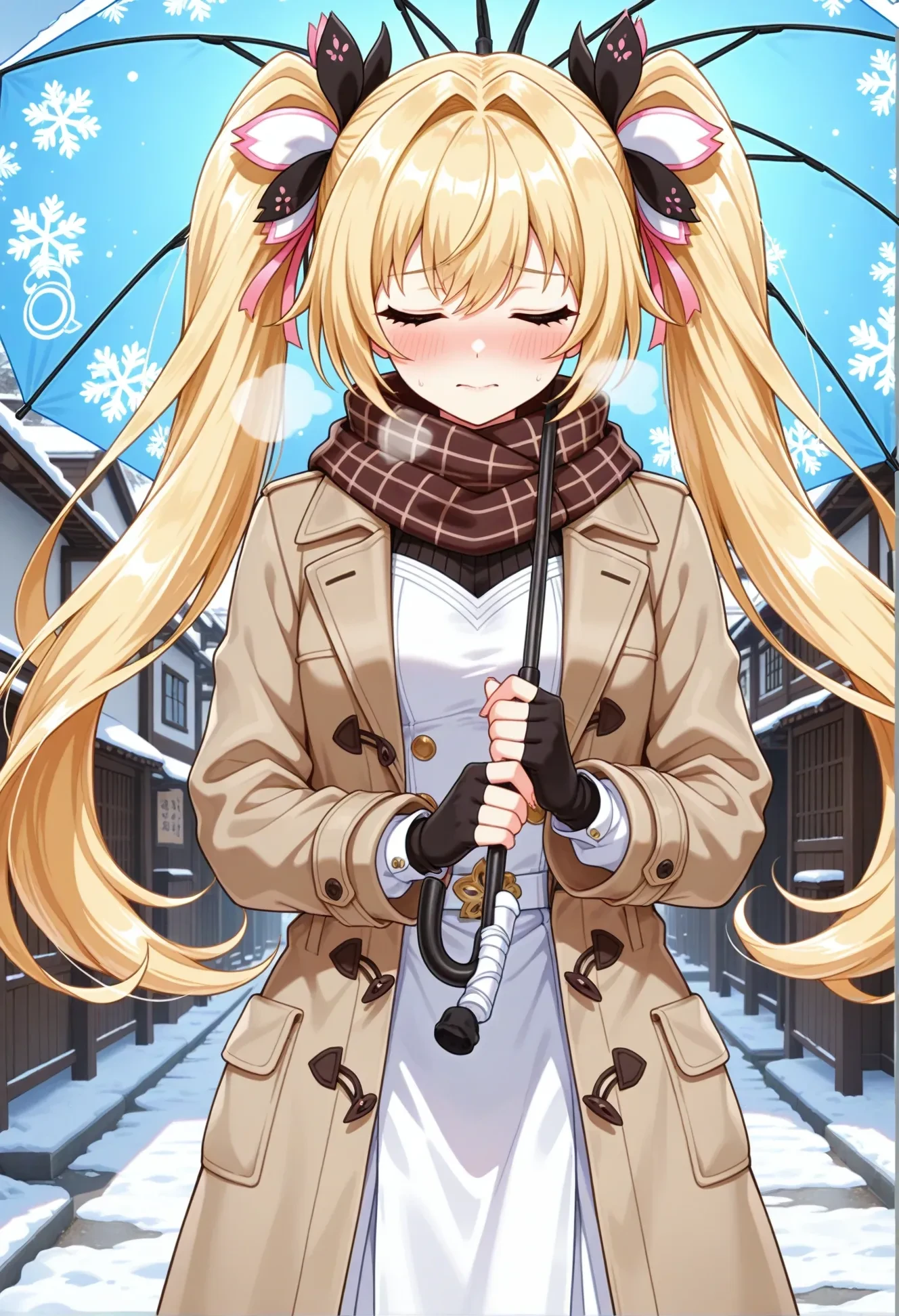 kurowizeniche,blonde hair,long hair,twintails,hair intakes,bangs,pink eyes,hair ornament,small breasts,