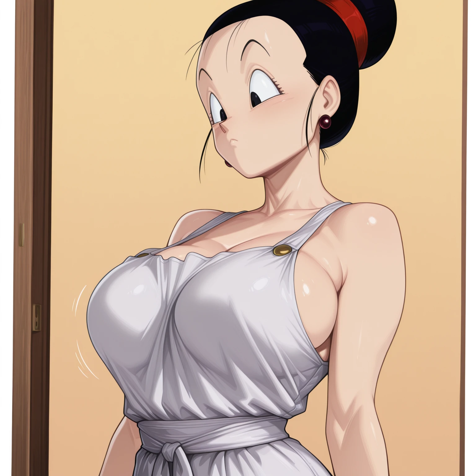 chichi, dragon ball, hair, black eyes, tied haid, hair bun, large breasts, milf, mature woman