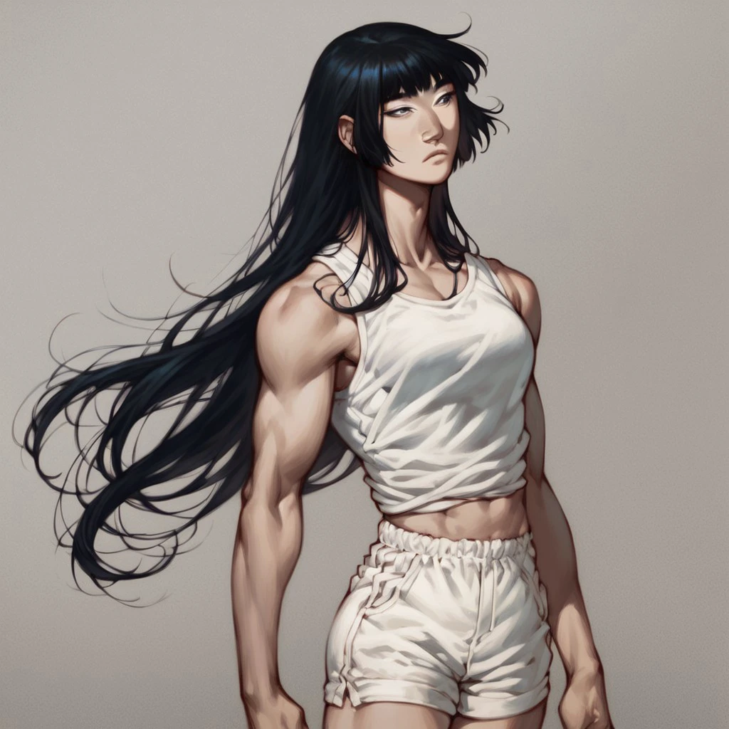 asian face, black hair, high cheekbones