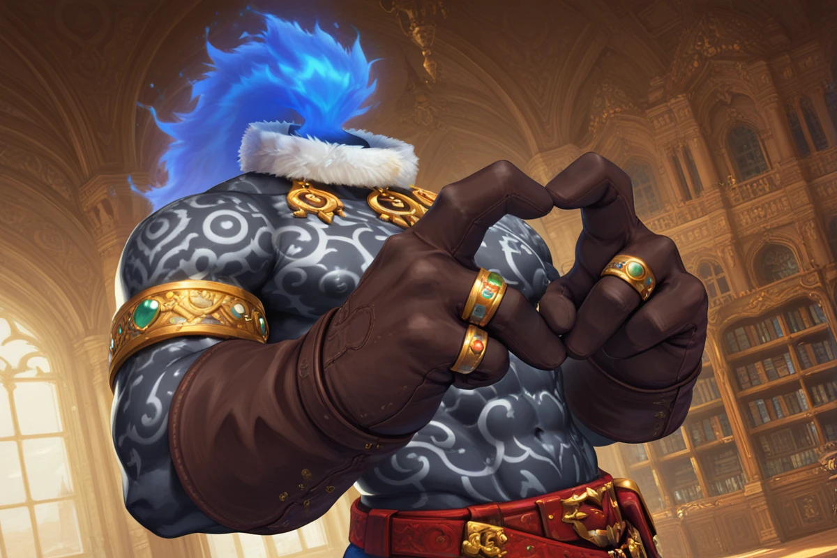 jewelry, classy, golden armlet, brown armwear, big hands, big gloves, digit ring, red belt,