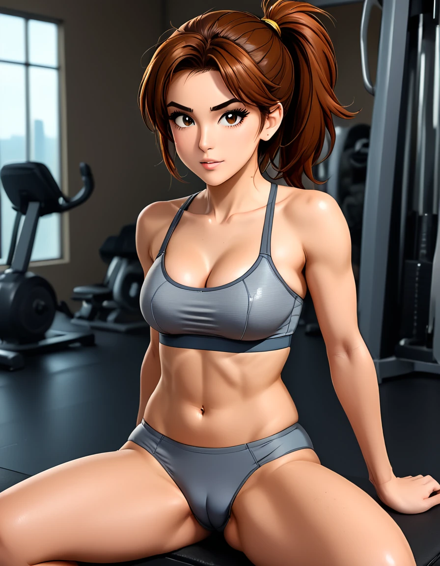 cleavage, glossy skin, dynamic angle, illustration, studio light, soft bokeh, sunset lighting, golden hour, cinematic light