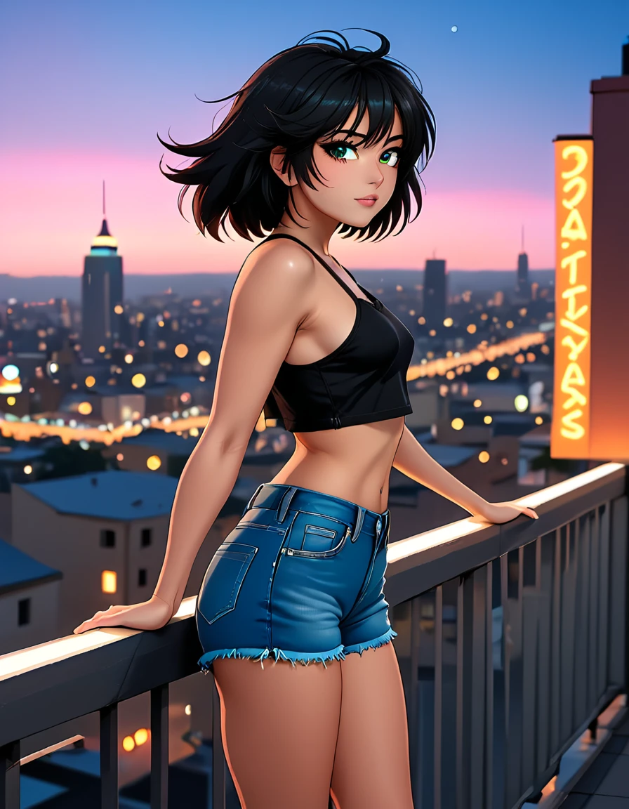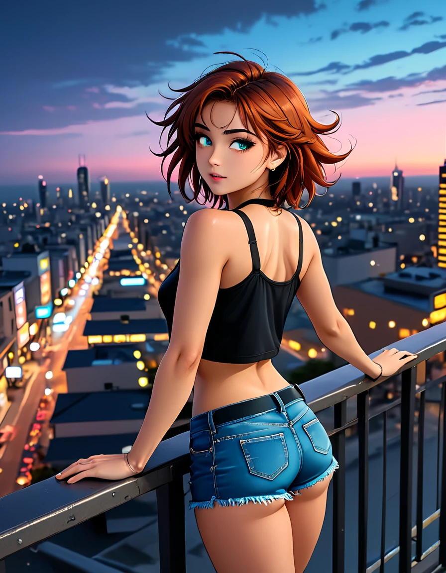 Prompt 2 (Anime):anime, 1girl, in a tight red crop top and shorts, ass, looking back, smirking, confident pose, messy short hair, rim light, studio light, cheekyxl aesthetic <lora:CheekyXL-V1_epoch_10:1.3>