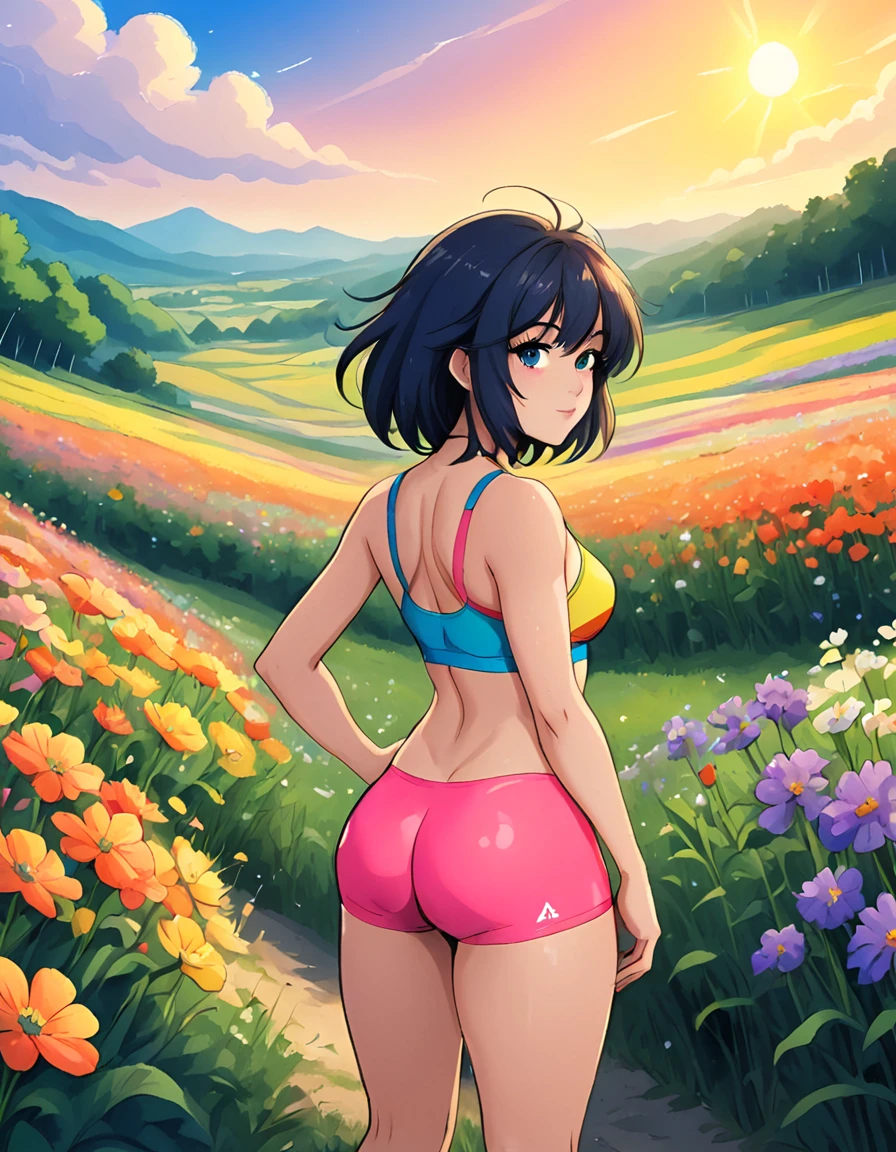 Prompt 1 (Anime):anime, 1girl, 25-year-old woman, from behind, looking back at viewer, wearing a lilac sundress, smirk, flirty pose, cleavage, glossy skin, dynamic angle, golden hour light, soft bokeh, illustration, in the style of cheekyxl <lora:CheekyXL-V1_epoch_10:1.0>