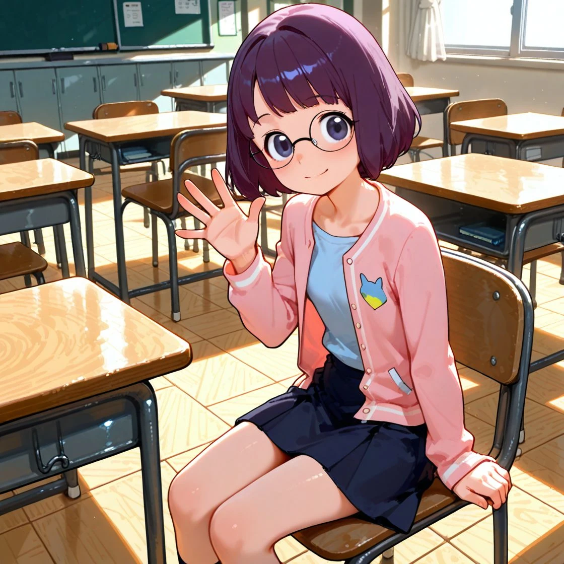trigger: inaho_misora, short hair, glasses,purple hair,