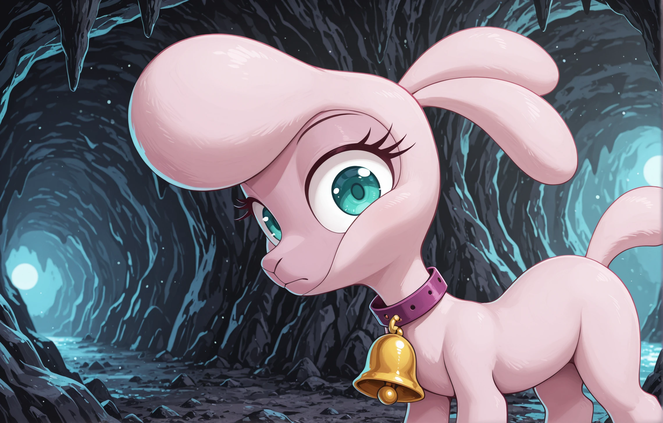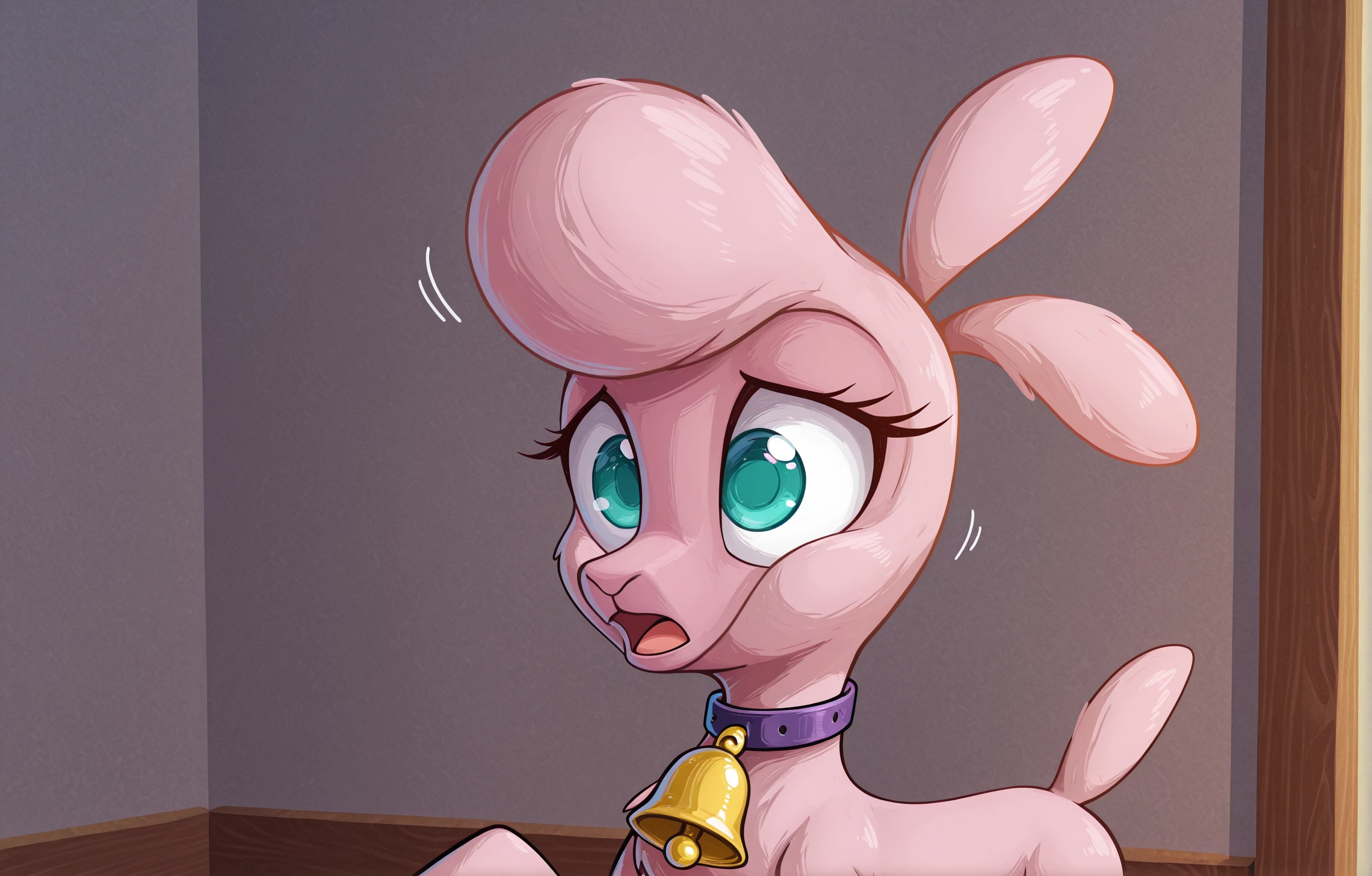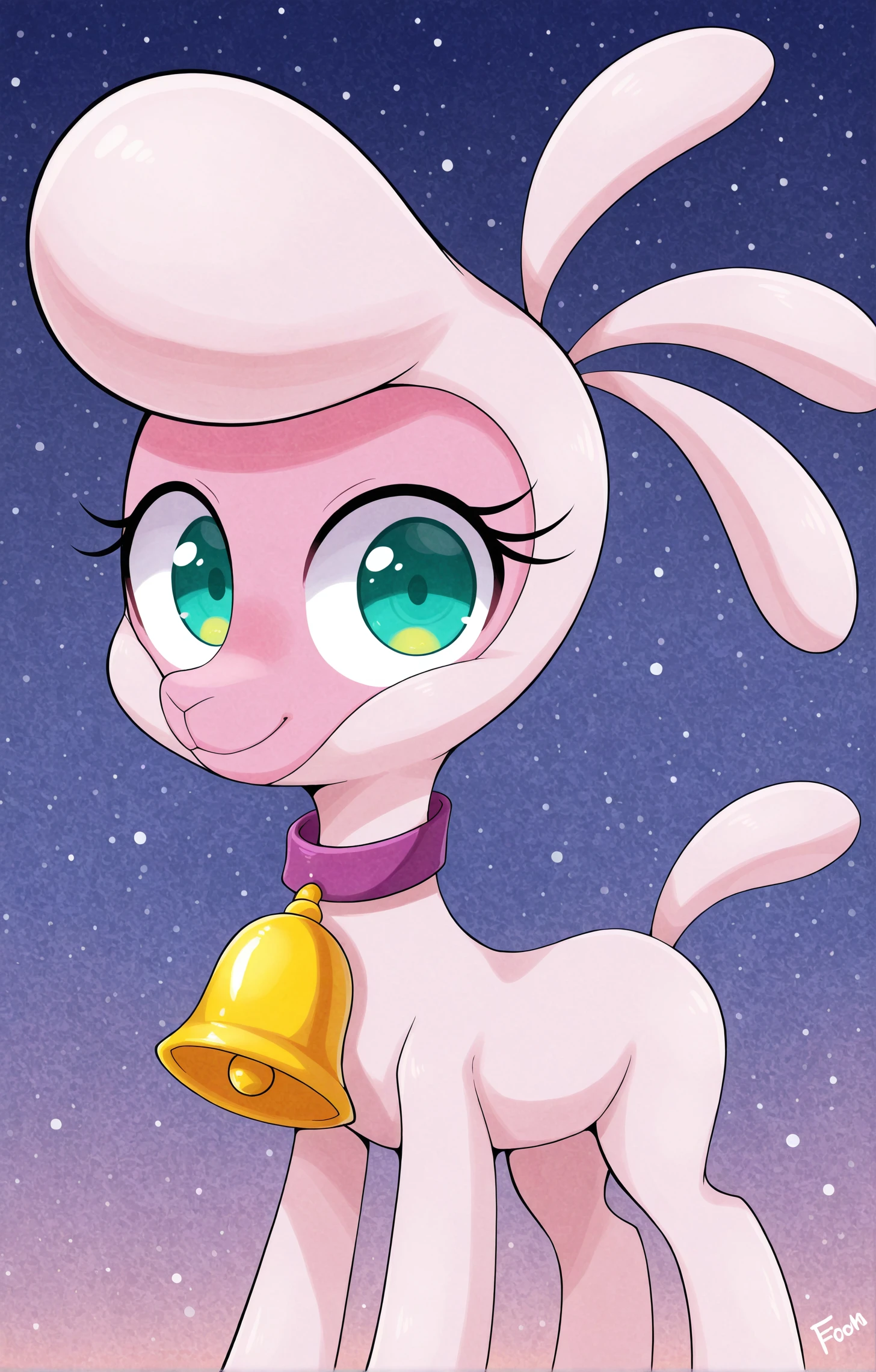 f3d pom (tfh) sheep, sea green eyes, bell, collar, purple collar, Blue eyes , bell on neck, pink skin