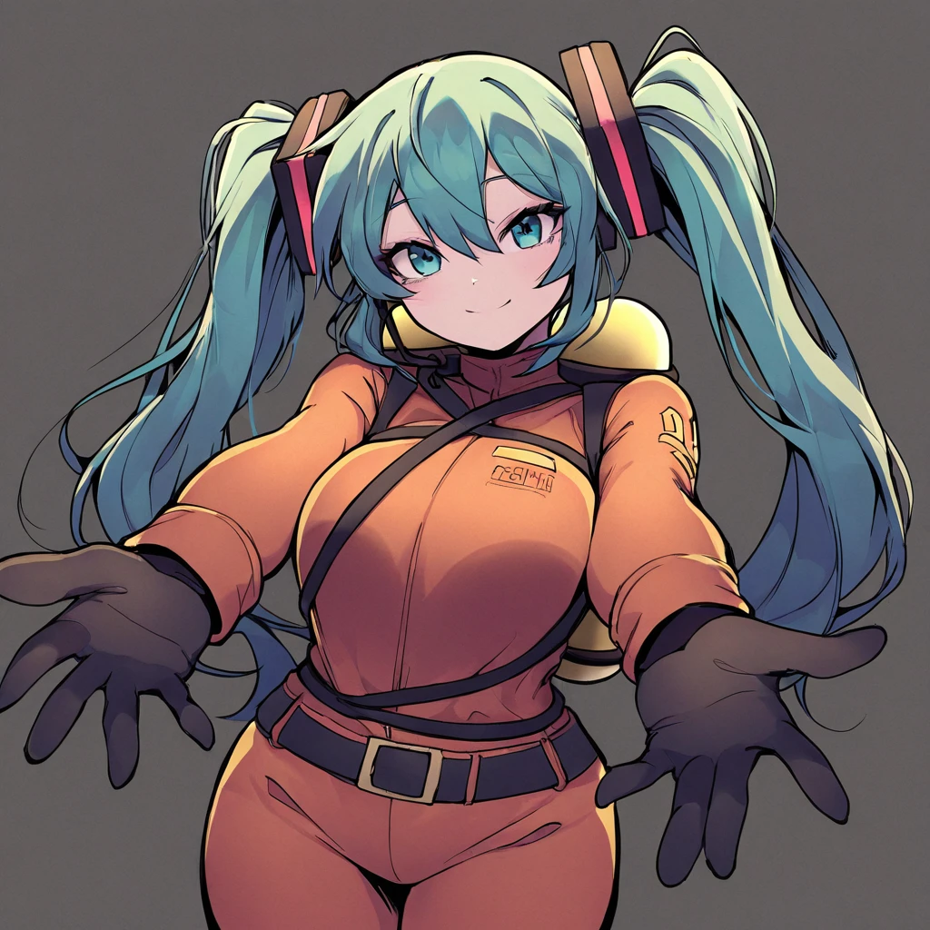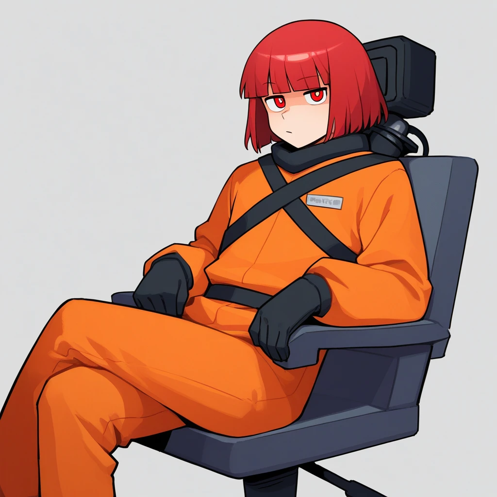 Trigger words: helmet, black gloves, orange jumpsuit, hazmat suit, chest strap, long sleeves, oxygen tank, boots, black footwear