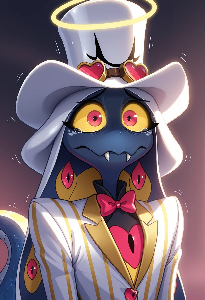 Characters: Grimmie02Sera, very long hair, tattoo, ?????????????, shiny skin, halo, dark skin, dark-skinned female, Grimmie02SeraPartial, Glowing Hair Eyes, Grimmie02SeraAngelic, bird, Grimmie02Satan, red skin, horns, scaly, yellow eyes, Grimmie02Emily, blue eyes, very long hair, Grimmie02SirPentious, serpent, red eyes, top hat, snake tail, Grimmie02CherryBomb,