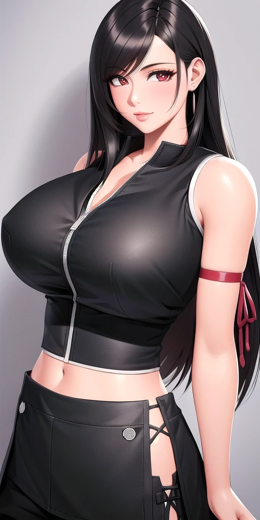 Black_cropped_vest_Black_cargo_shorts_Red_arm_ribbon: Her Advent children outfit