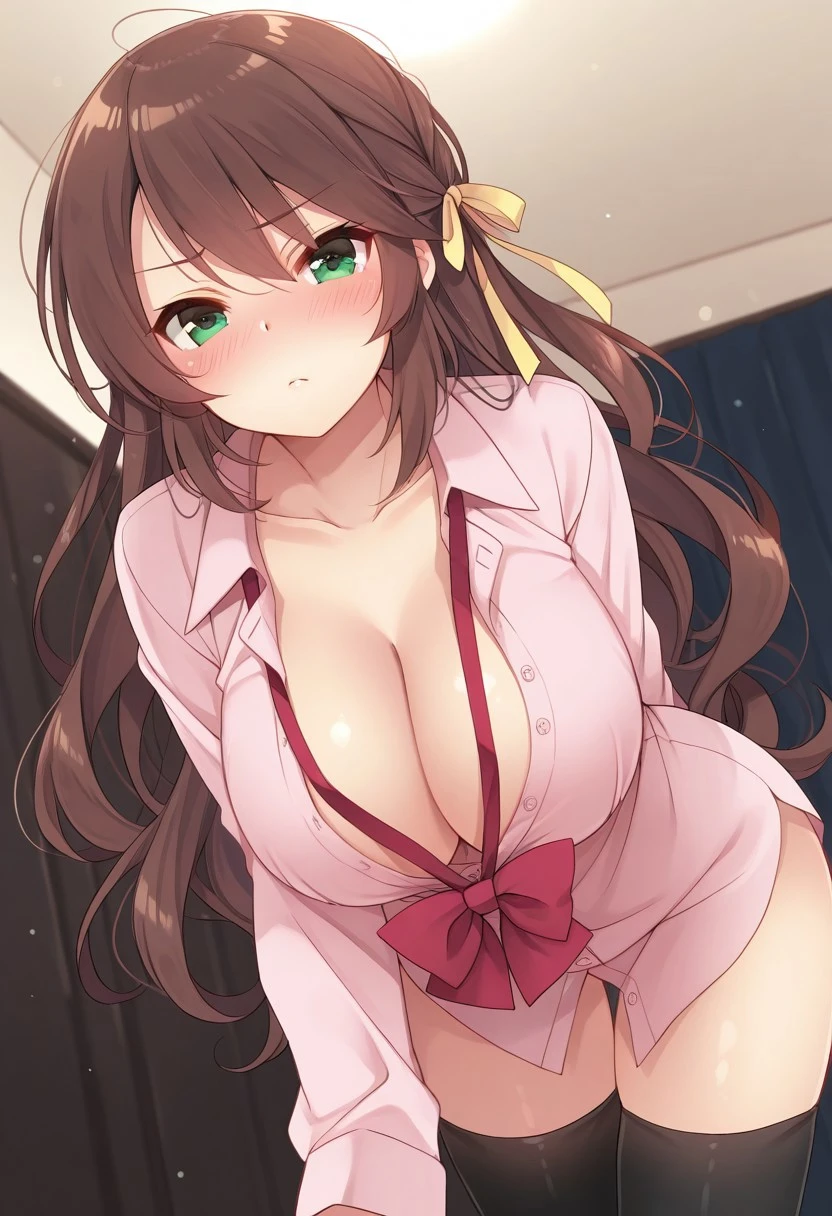 Asou Meiko, green eyes, very long hair, brown hair, large breasts