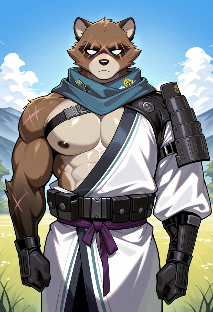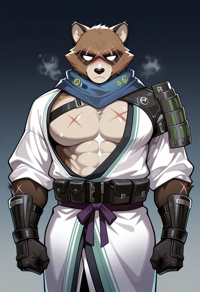 H4j1m3,t4nuk1,brown fur,scars on face,no pupil