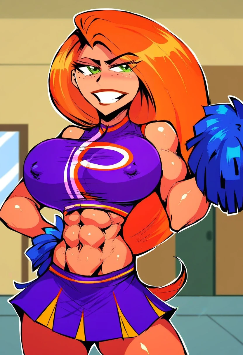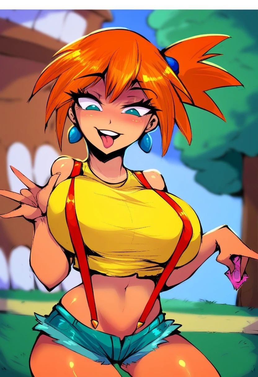 Generic useful prompts: large breasts or huge breasts, shiny skin, abs, toned, lips, wide hips, thick thighs, makeup, cowboy shot, bursting breasts, grabbing own breast, skindentation