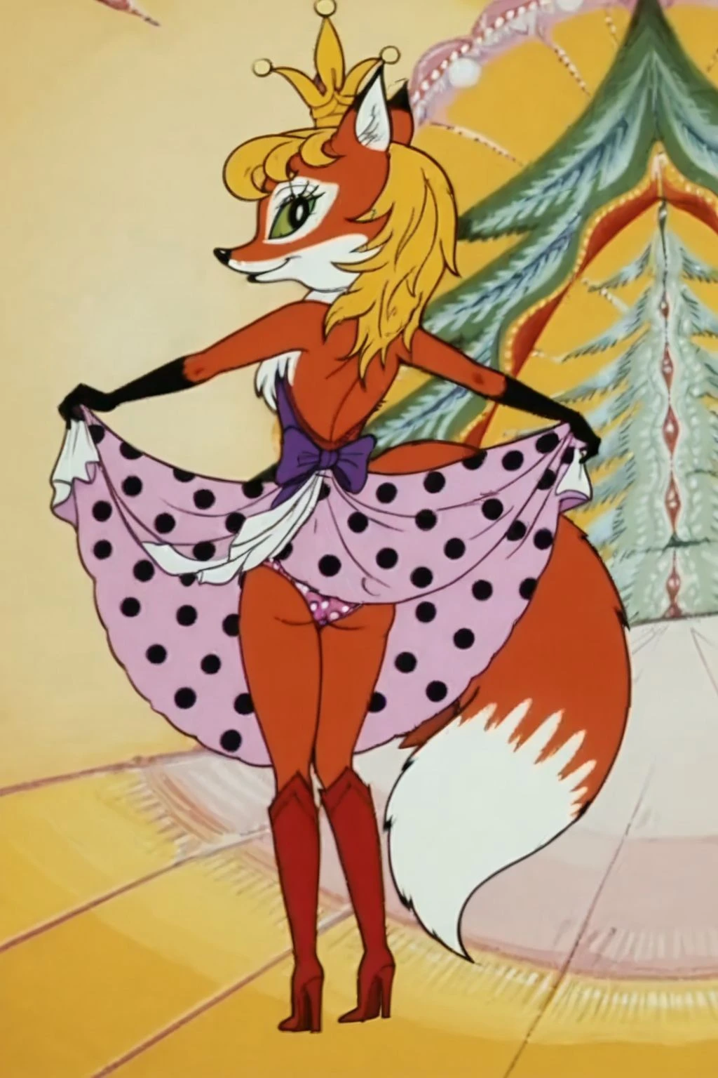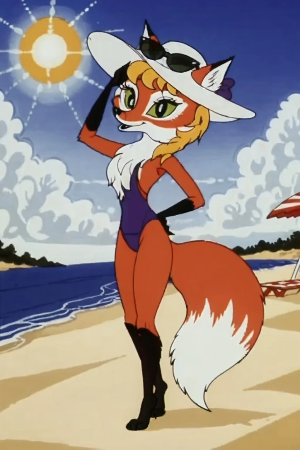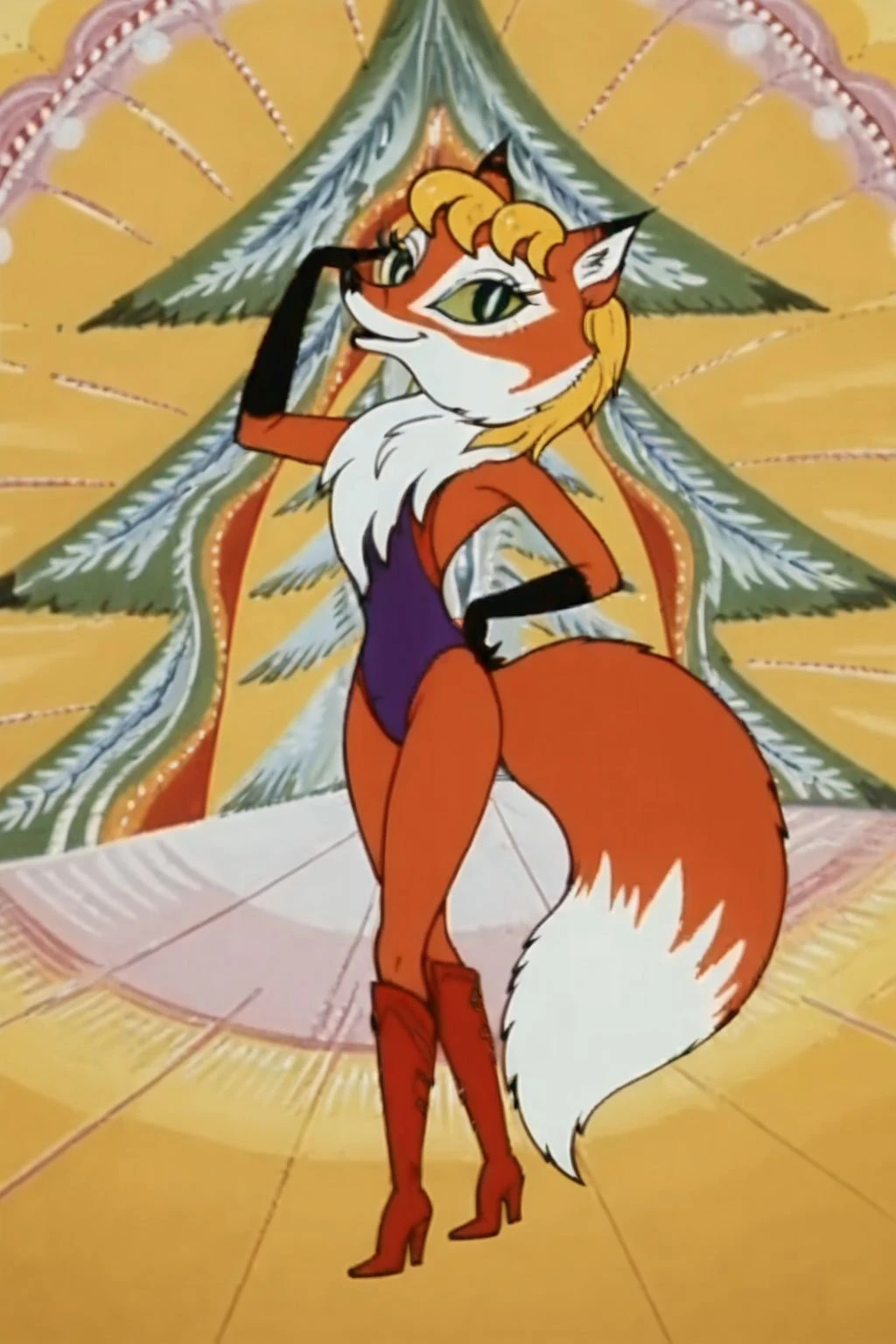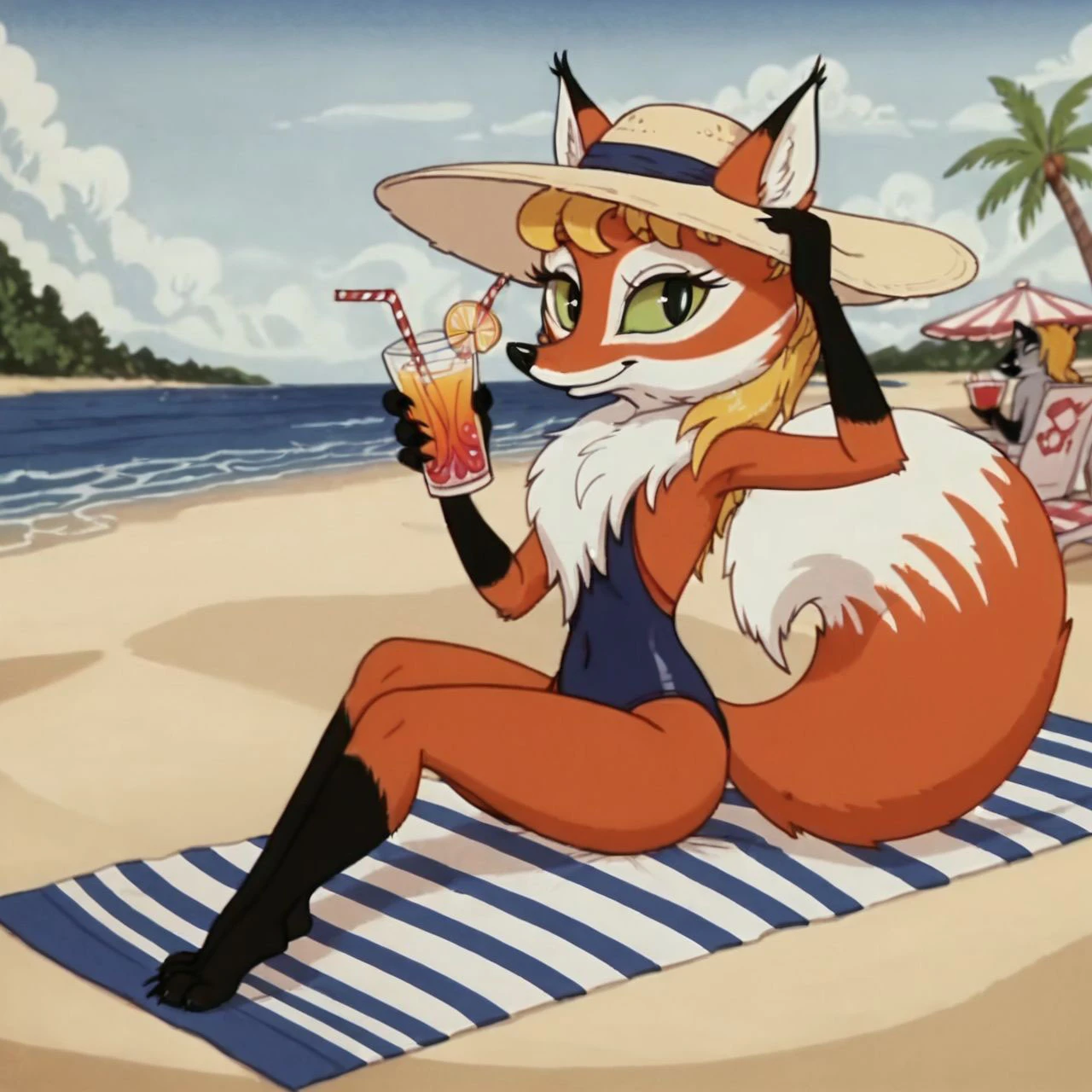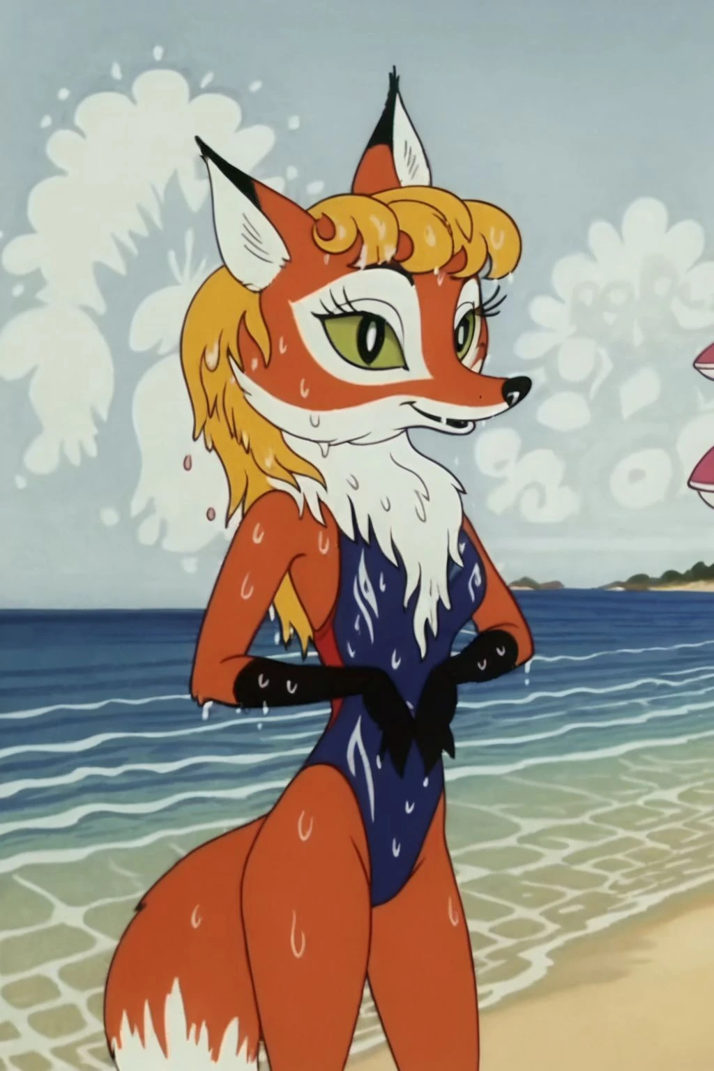 missnewyar vixen, fox, fox tail, green sclera, blonde hair,