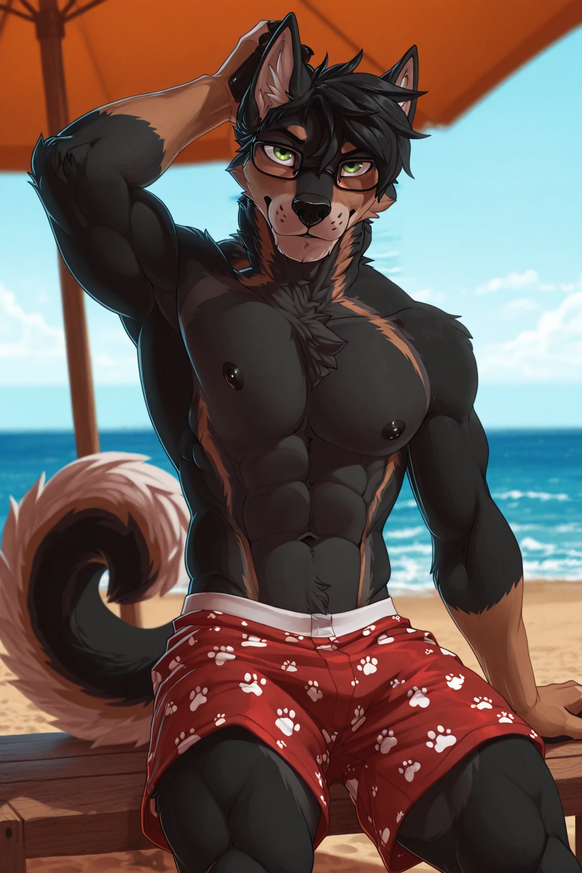 masterpiece, best quality, amazing quality, very aesthetic, high resolution, ultra-detailed, absurdres, newest, scenery, depth of field, scenery, volumetric lighting, by feralise, furry, furry female, anthro, animal ears, animal nose, snout, egyptian mythology, mythology, anubis, canine, deity, (black fur:1.4), body fur, yellow eyes, gold makeup, eyeshadow, egyptian, egyptian clothing, egyptian headdress, short tail, small waist, curvy figure, large breasts, saggy breasts, dark ???????, 1girl, solo, black hair, long hair, smile, huge ass, standing, looking at viewer, jewelry, bottomwear, earrings, loincloth, full body, paws, barefoot, panties, bent over, from side, red background, simple background, gradient backgroundPrompt (Negative)