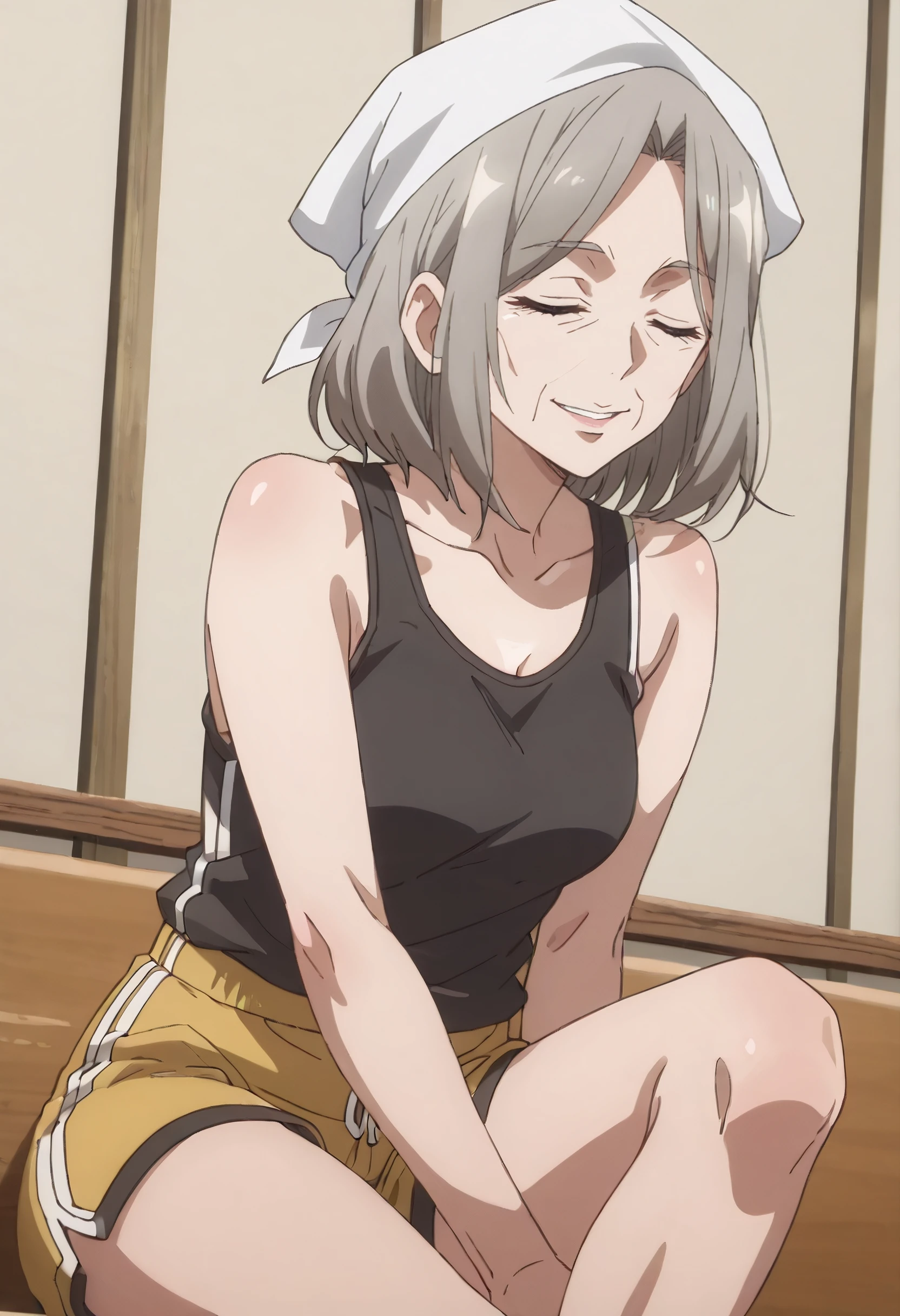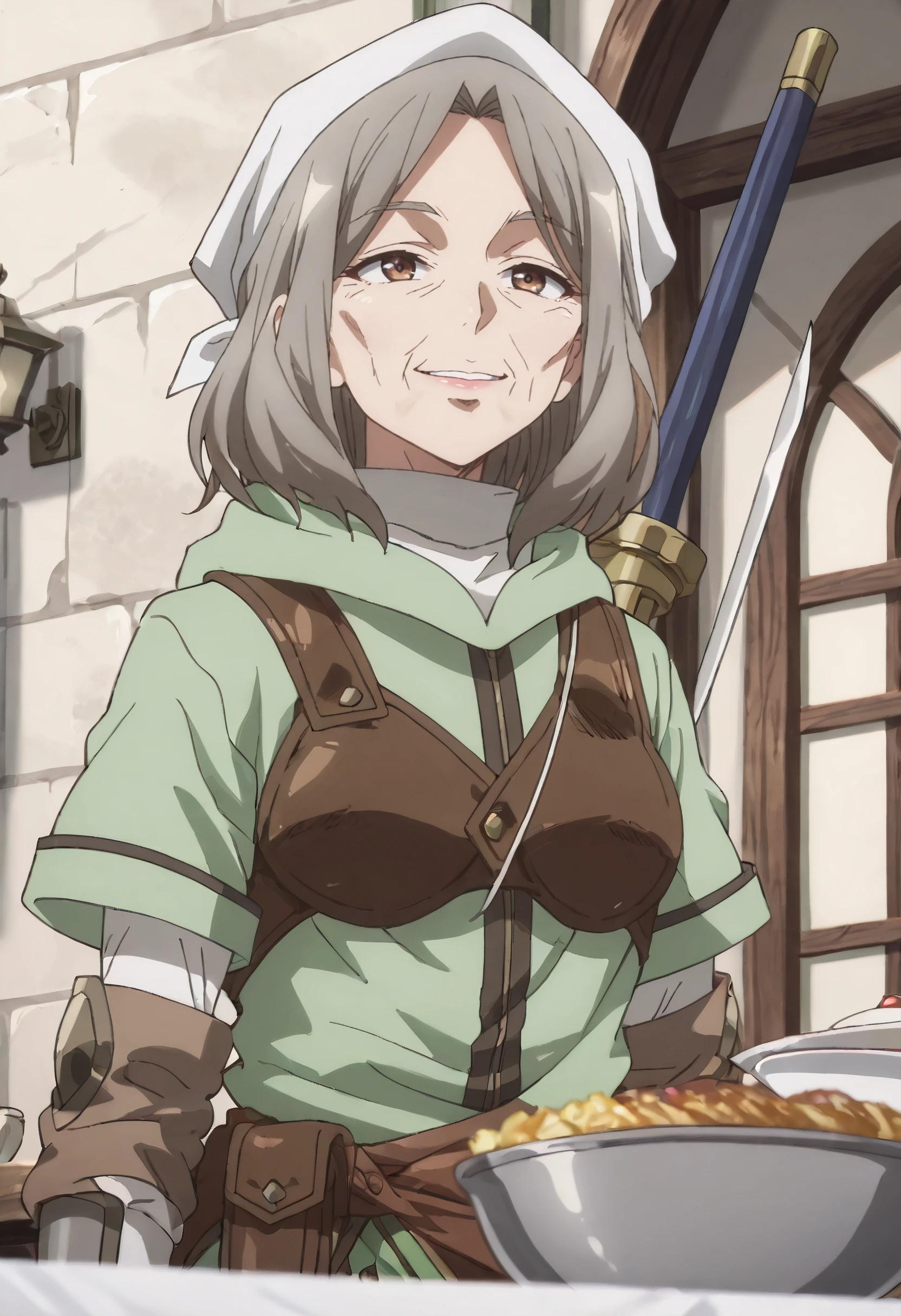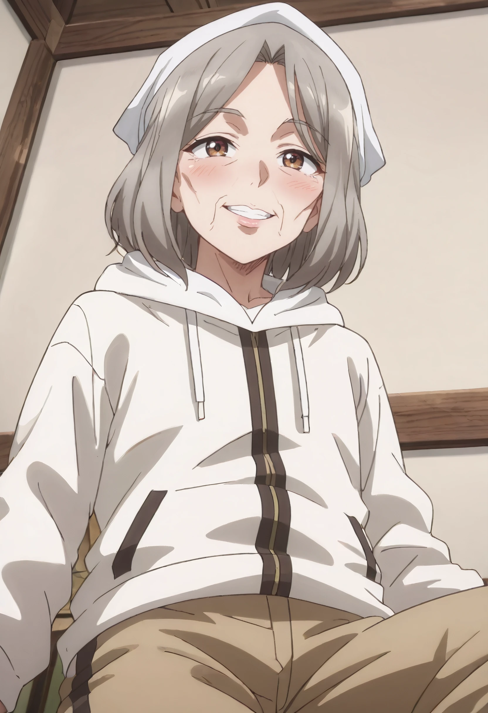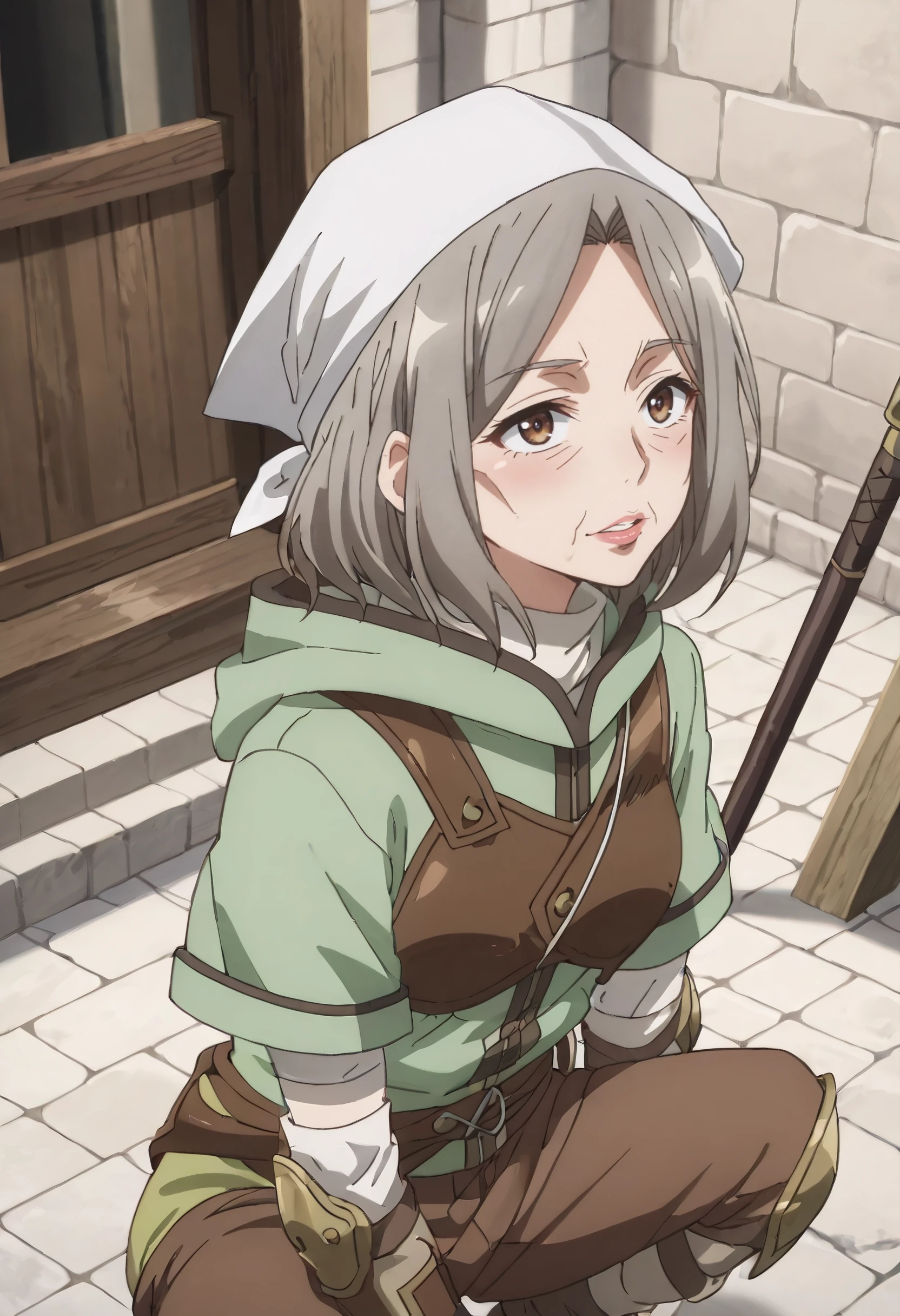 JHNHoxie, brown hair, grey hair, headscarf, brown eyes, short hair, old, old woman,