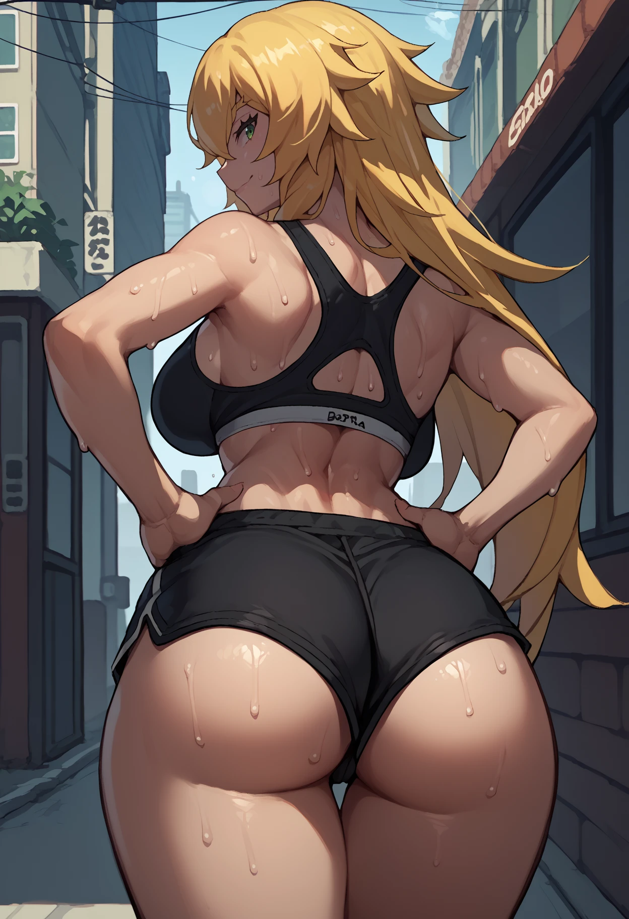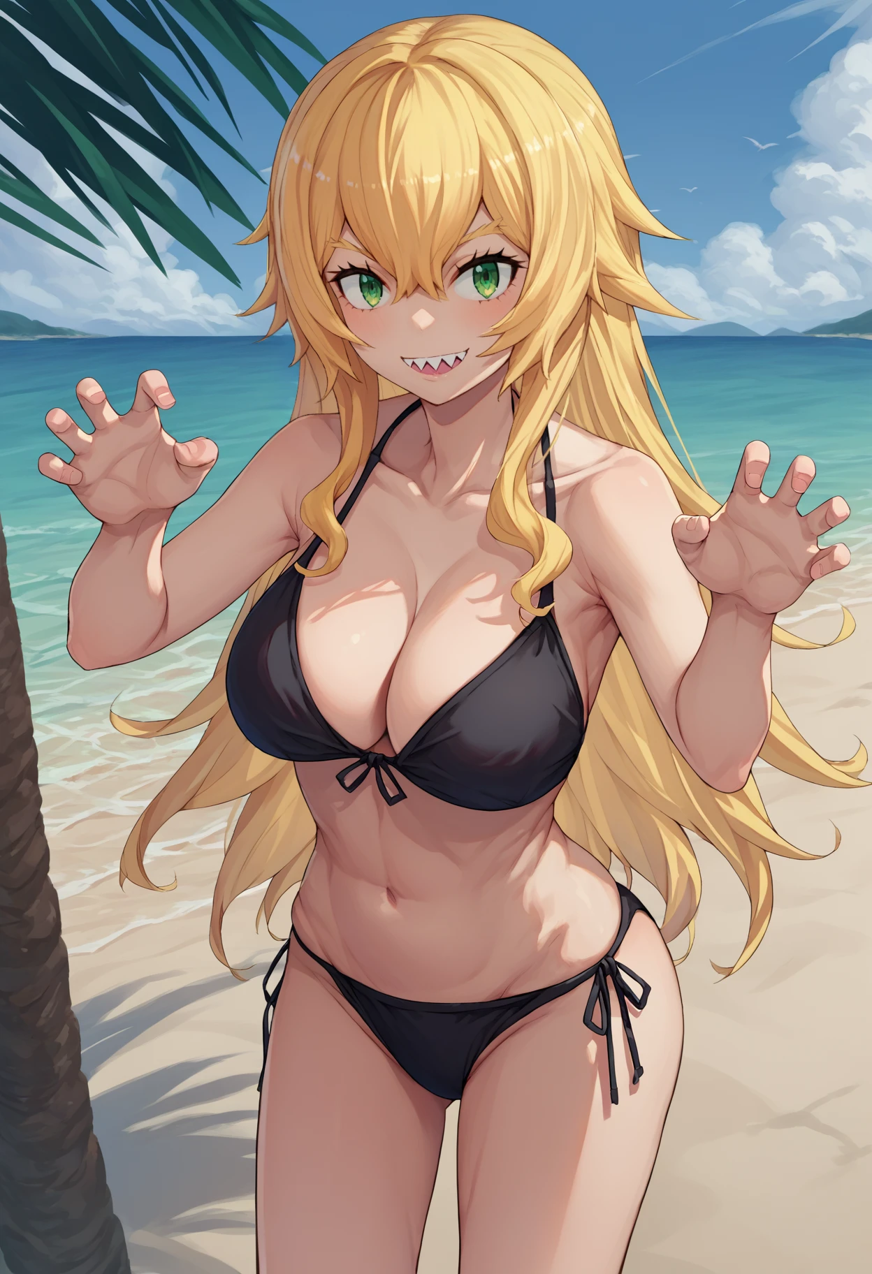 Trigger + Appearance: frederica baumann, sharp teeth, thick eyebrows, large breasts