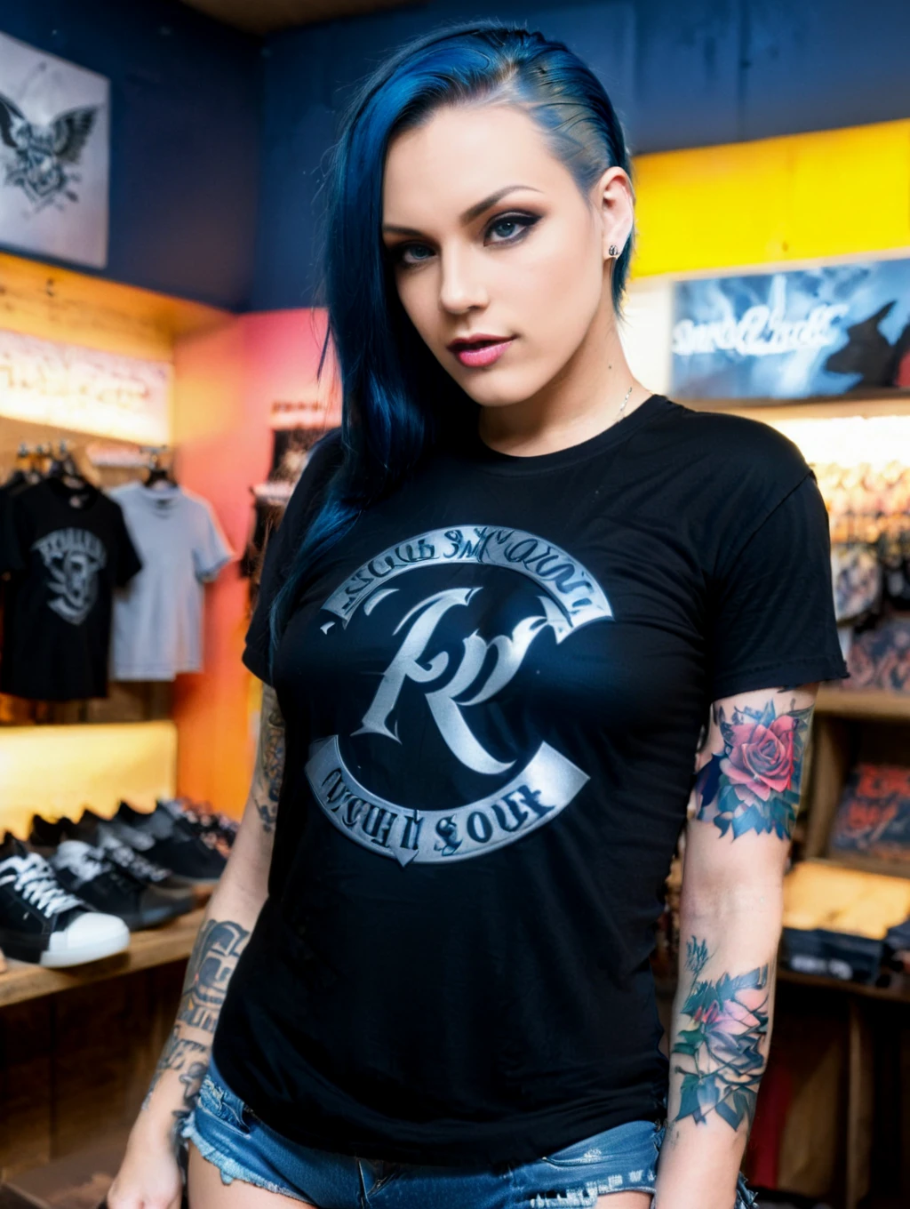 Raven is suppose to have: long blue hair, blue eyes, pale skin and tattooes. Feel free to had this in your prompt for more efficience.