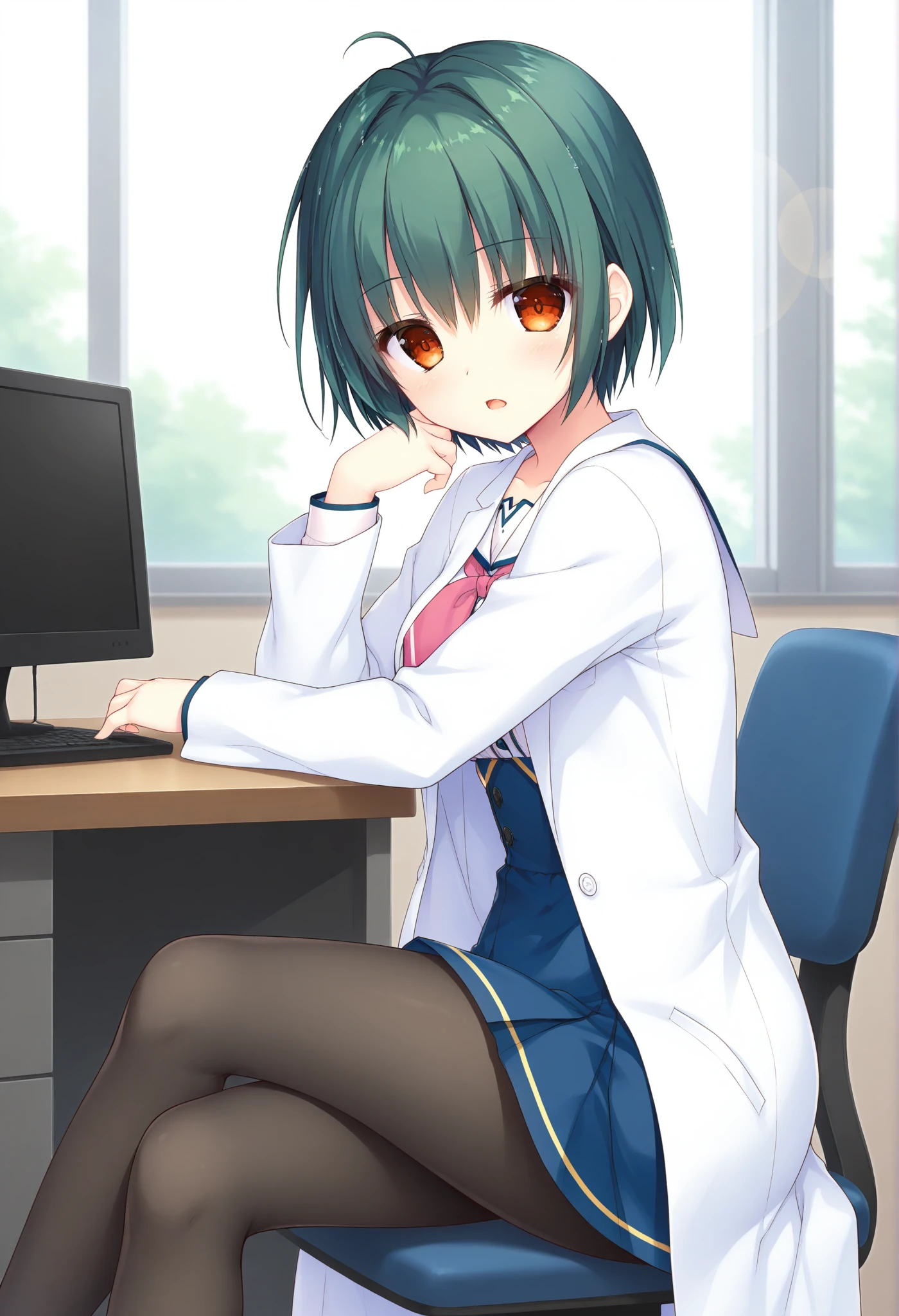 Ichinose Nana,green hair,short hair,orange eyes,校服 (school uniform)