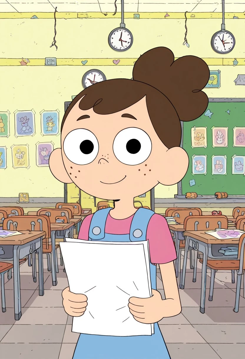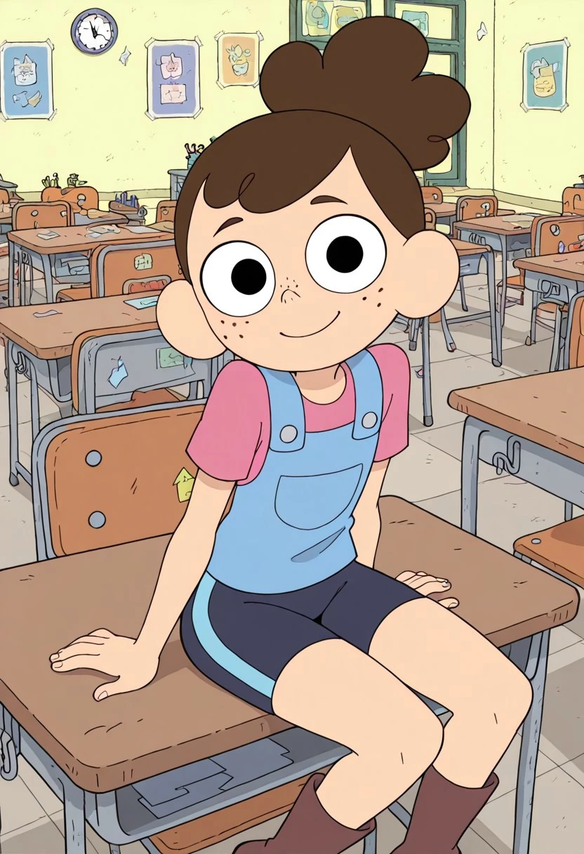 1girl, Solo, Ashley_C, light skin, black eyes, curly hair, brown hair, freckles, curly voluminous bun