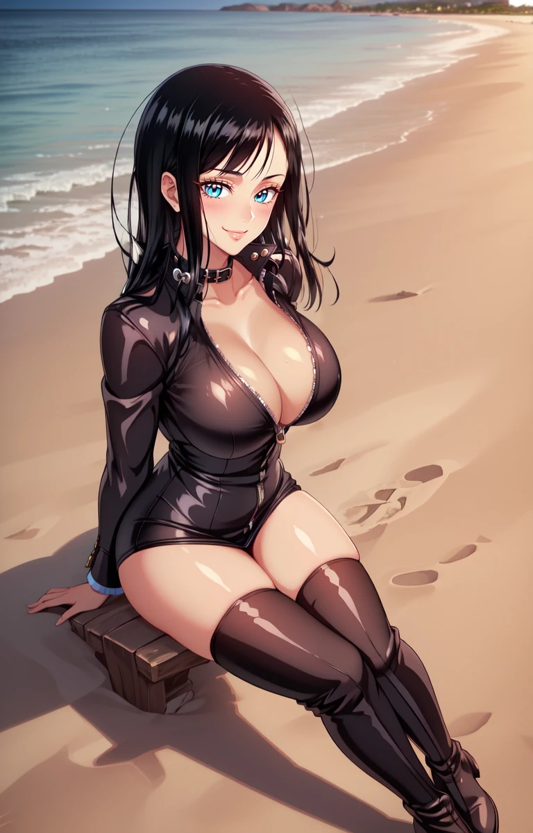 Nico Robin, micro dress, zipper, thigh boots, kneehighs,