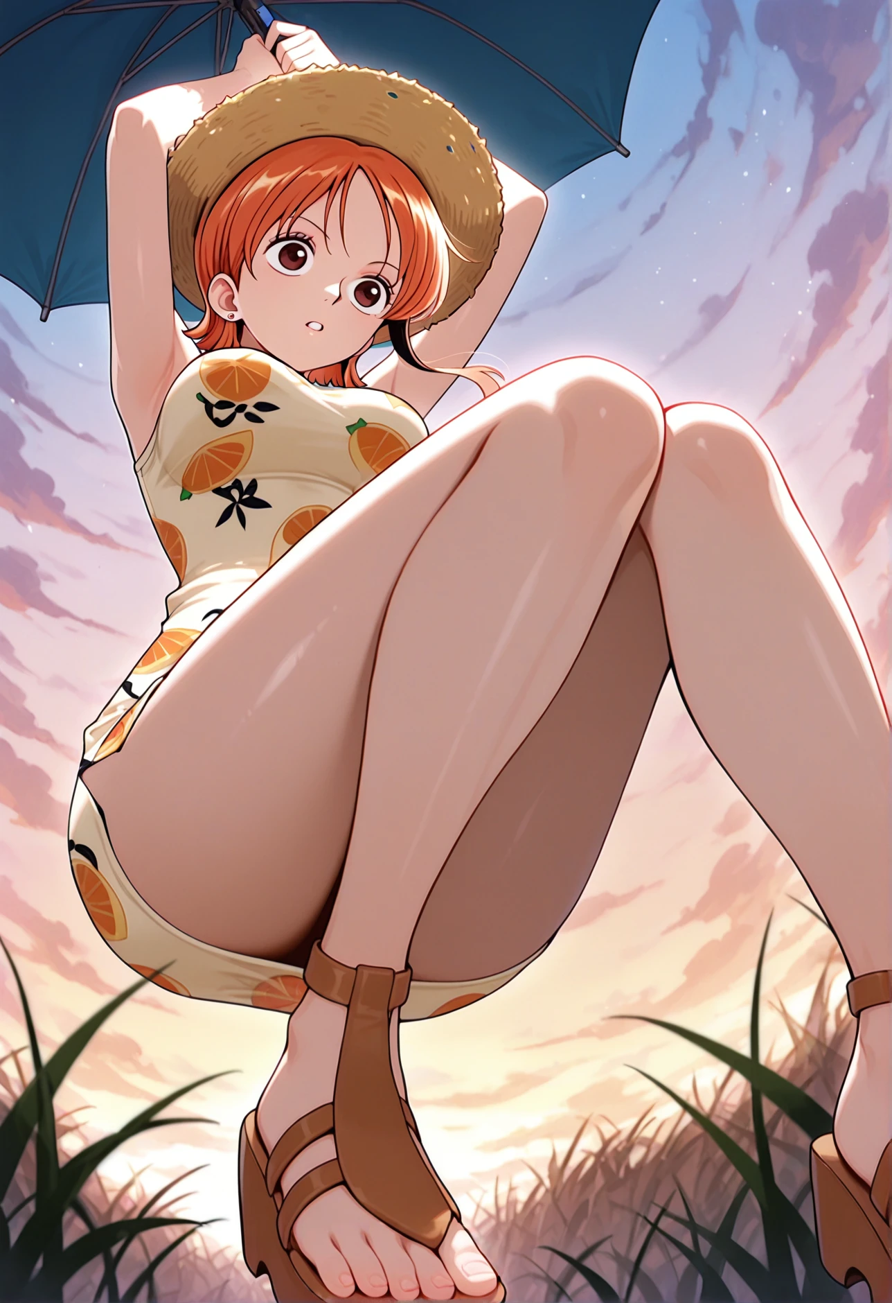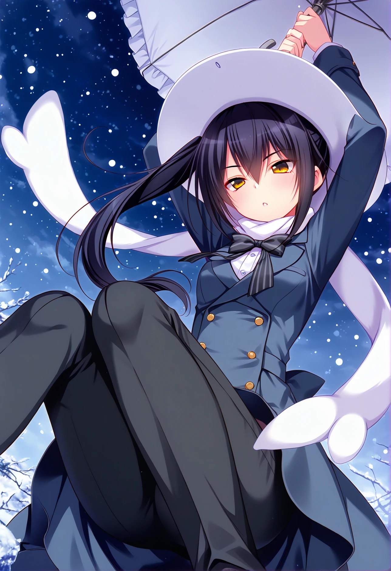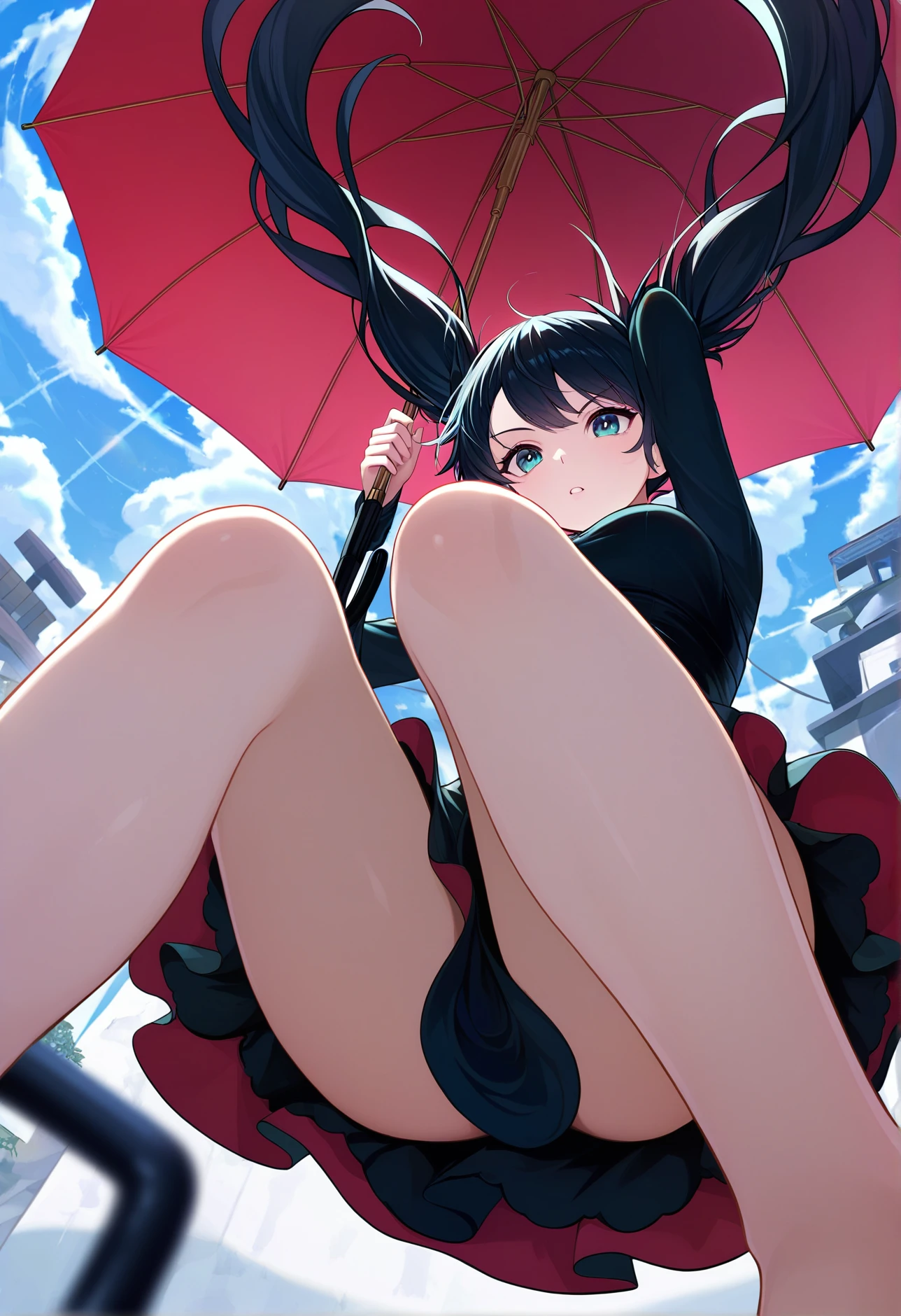 trigger words: tentonscrush, holding umbrella, floating hair, knees up, midair, from below, sky