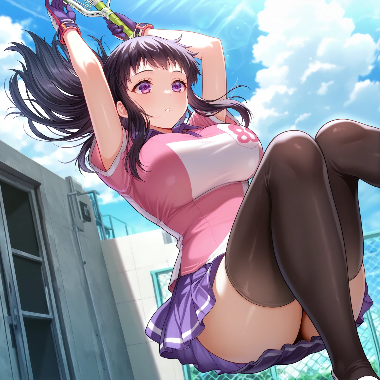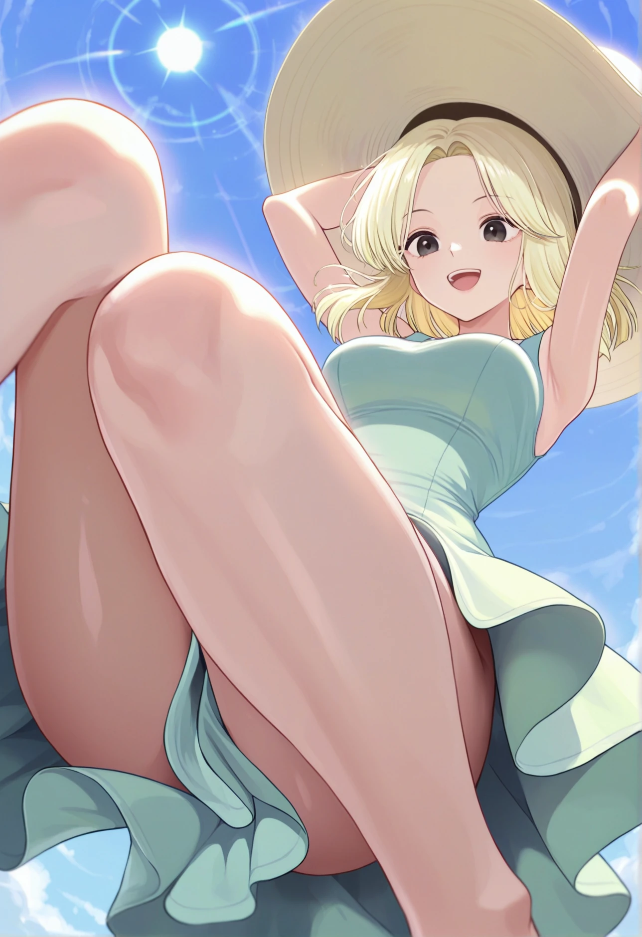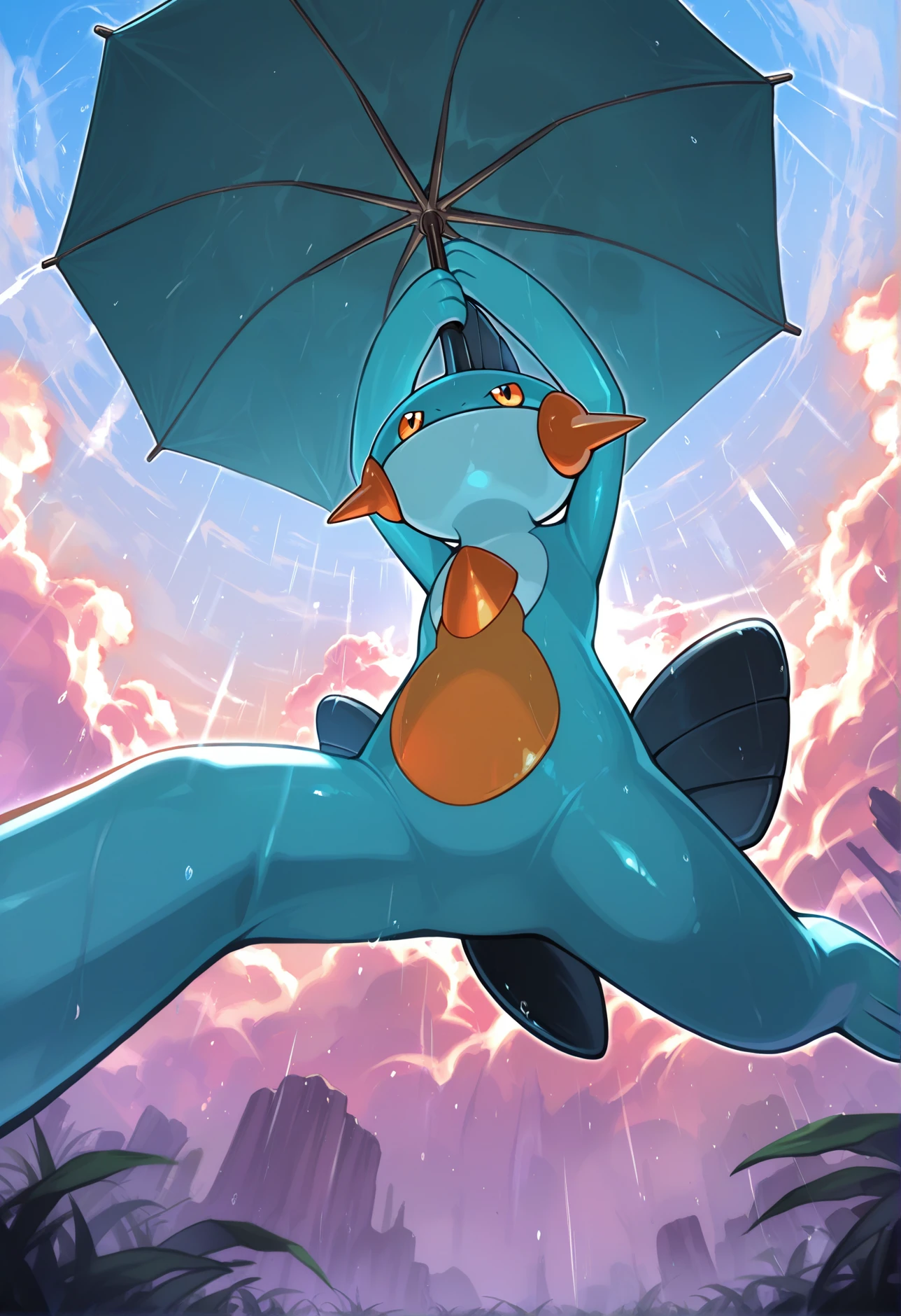 trigger words: tentonscrush, holding umbrella, floating hair, knees up, midair, from below, sky