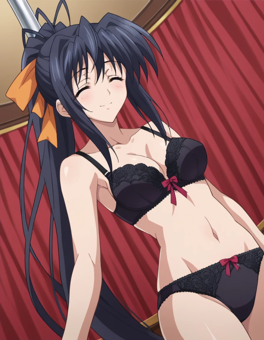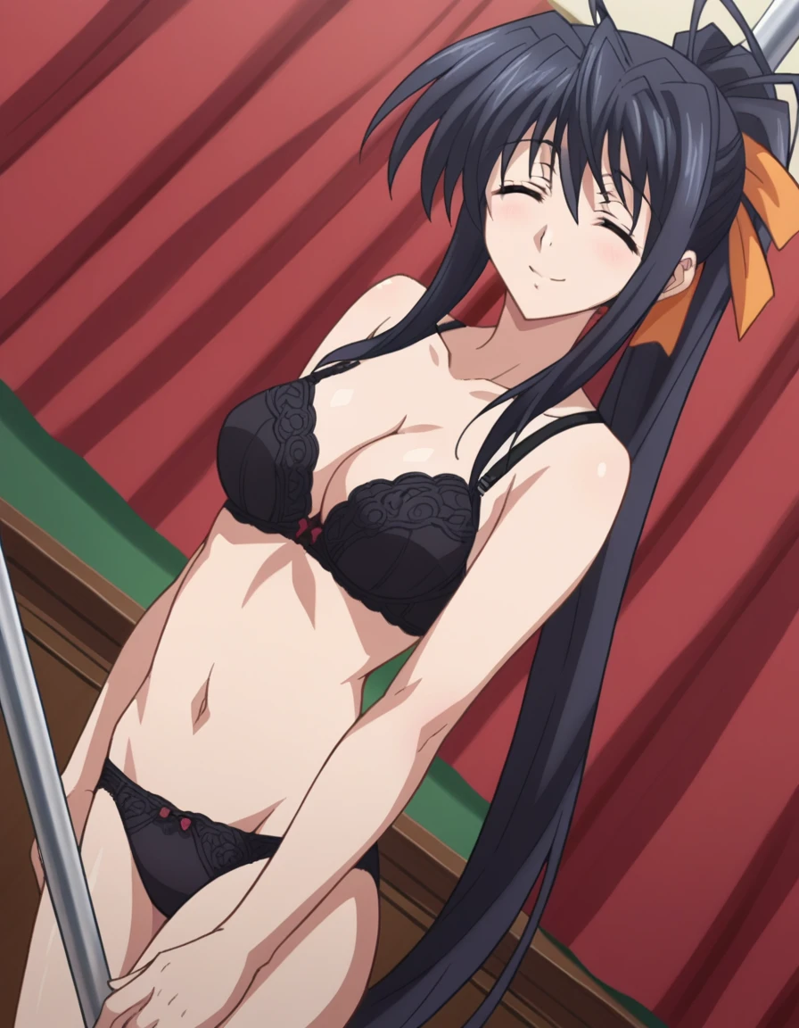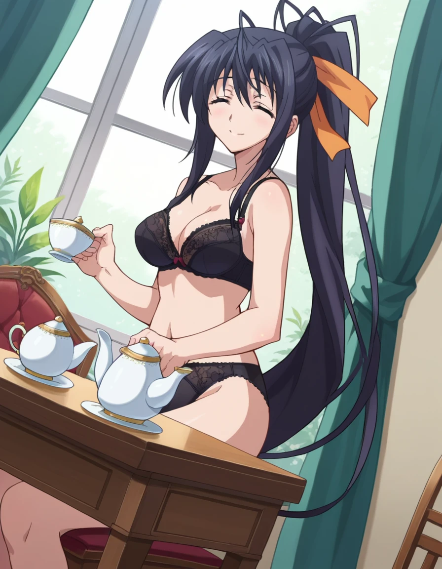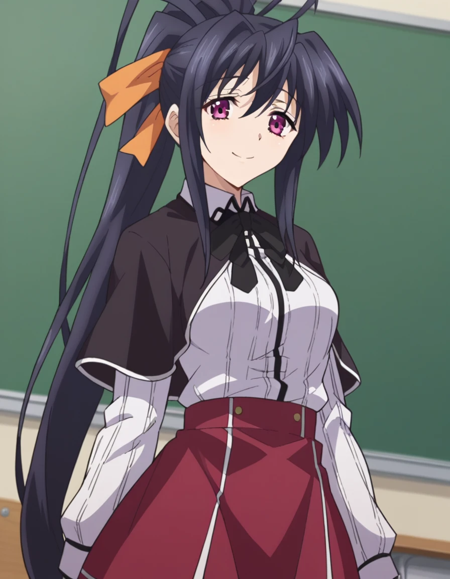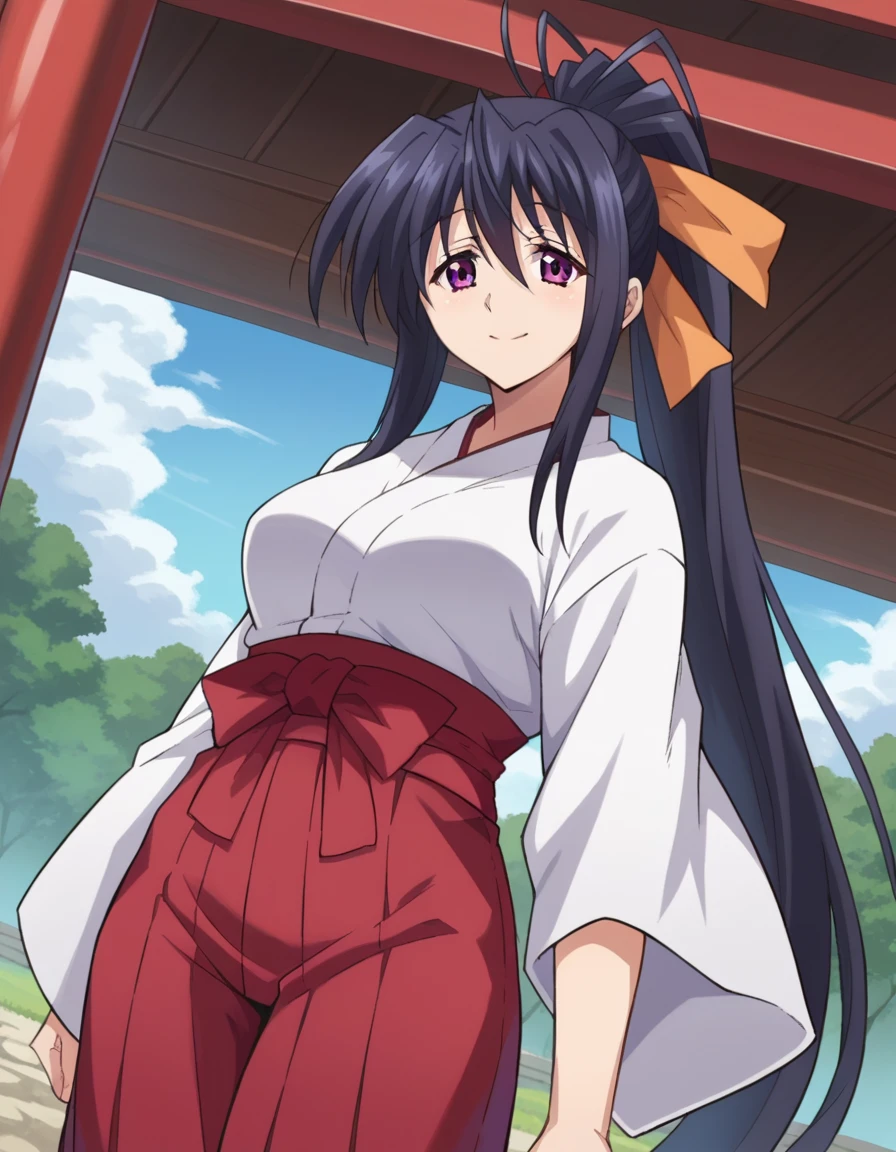 akeno himejima, long hair, black hair, ribbon, very long hair, purple eyes, hair ribbon, ponytail, antenna hair,