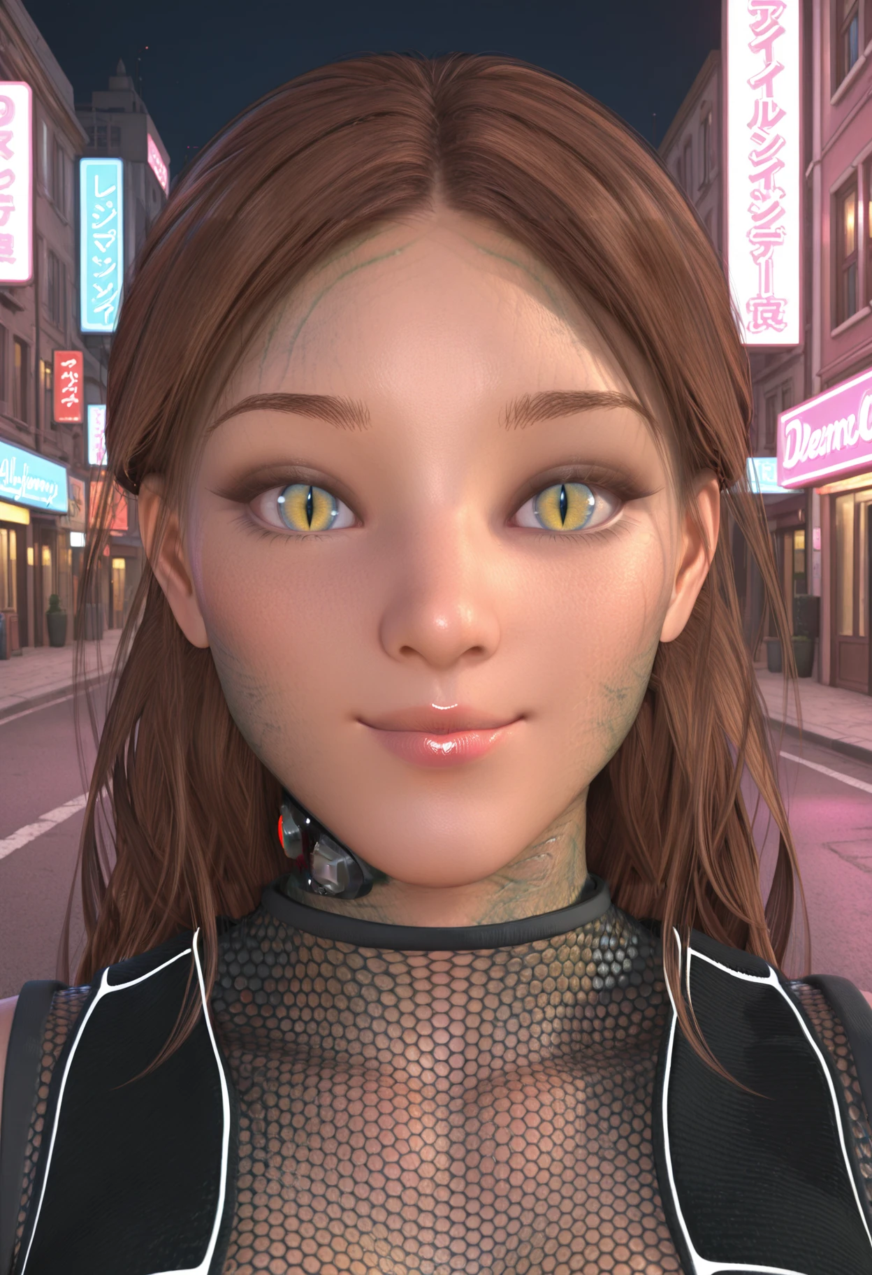 This second trigger words are : long hair, brown hair, yellow-blue eyes, slit pupils, glossy lipstick, green nails, large breasts, round breasts, scaly skin, black sci-fi suit, fishnets bodysuit, gloves, boots, neck device,
