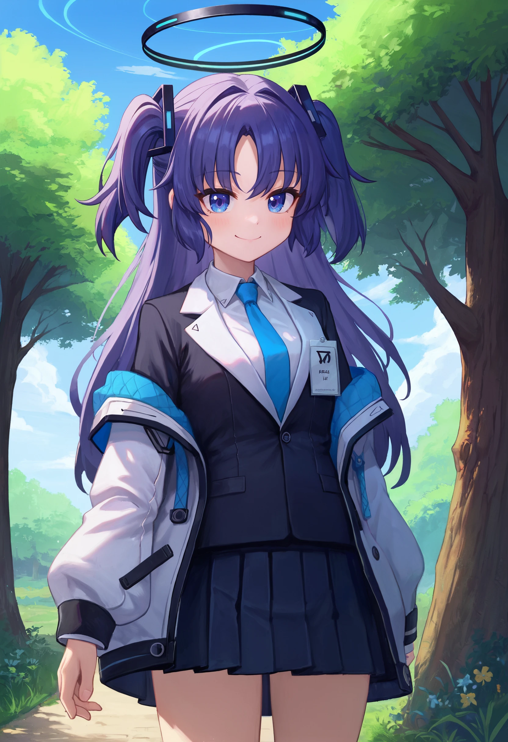 hayase yuuka, two side up, school uniform, belt, id card